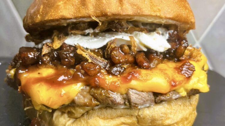 ●ジュピターズキッチン…日本一のハンバーガーを決める「JAPAN BURGER CHAMPION SHIP 2024」3位の名店。群馬県特産のこんにゃくを練り込んだバンズに、上州牛赤身100%パティ、群馬県産ベーコン、玉ねぎを甘く煮詰めたジャム、2種類のチーズ、フライドオニオンを挟んだ「ベーコンジャムチーズバーガー」は贅沢な逸品。