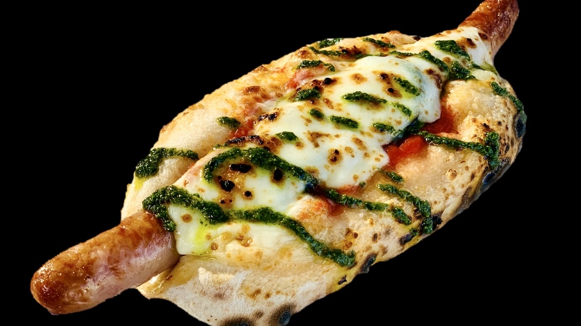 ●DIVERTENTE …イタリア産小麦を使ったこだわりのピザ生地で巻いた、サックリ、モッチリの新食感ドッグ。