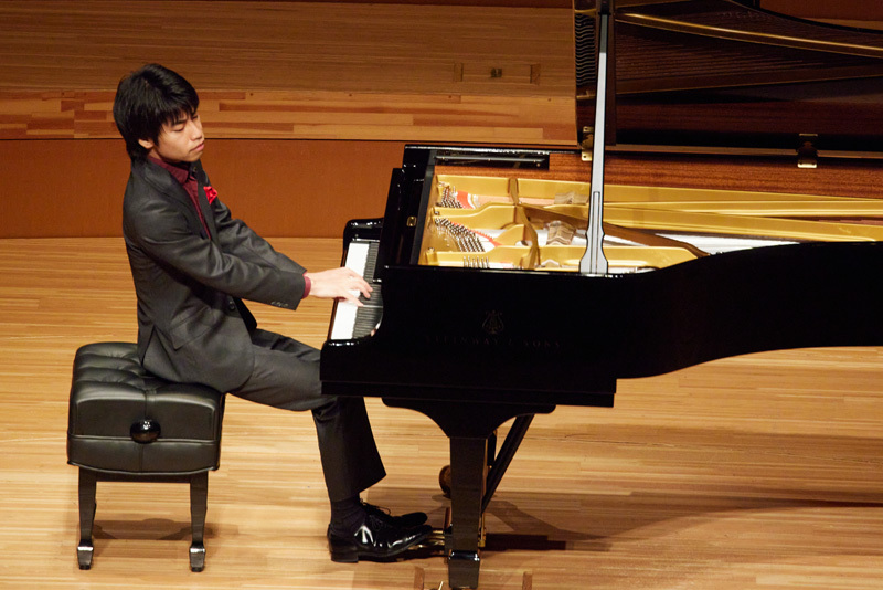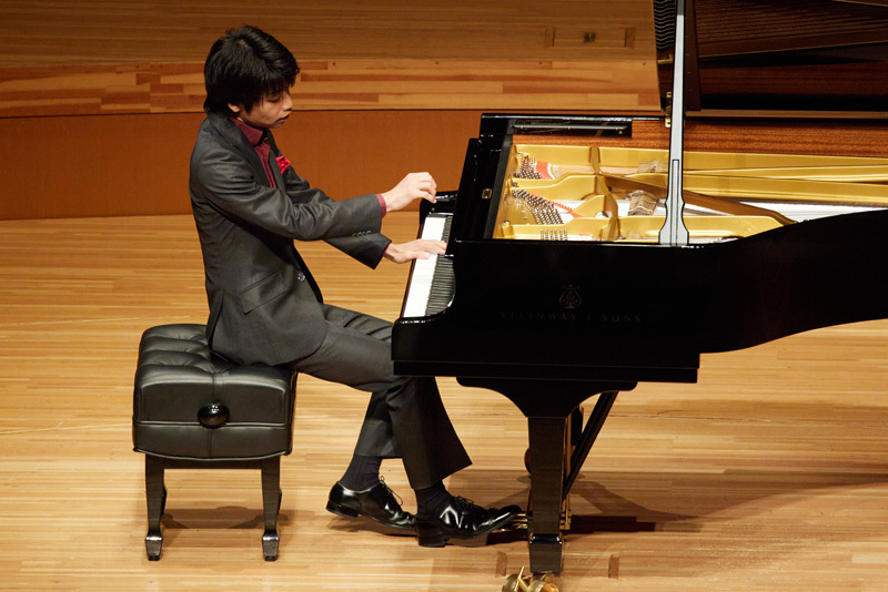 第二楽章では重音を轟かせながら執拗にダイナミクスをコントロールしてゆくその手法にメカニックな構築感がありありと表現されていた。しかし、“メカニック” という言葉の無味乾燥なイメージとは無縁の、モダニズムに裏づけられた精気あふれる色彩感の豊かさと、繰りだされる奏法の鮮やかさを通して、この若き作曲家が放つ天才性の萌芽が強烈に示唆されていたのは見事だった。第三楽章においてもロマンティシズムの薫りが理知的に漂い、みずみずしい音の響きと相まってよりいっそう不気味さを湛えていたのも印象的だった。そして、トッカータ風のパスピエともとらえられる最終楽章。コケティッシュな表情やカリカチュア的な語法など、あらゆる要素をリズミカルに聴かせ、まさに ”破壊的な” 攻めのピアニズムで全編を締めくくった。