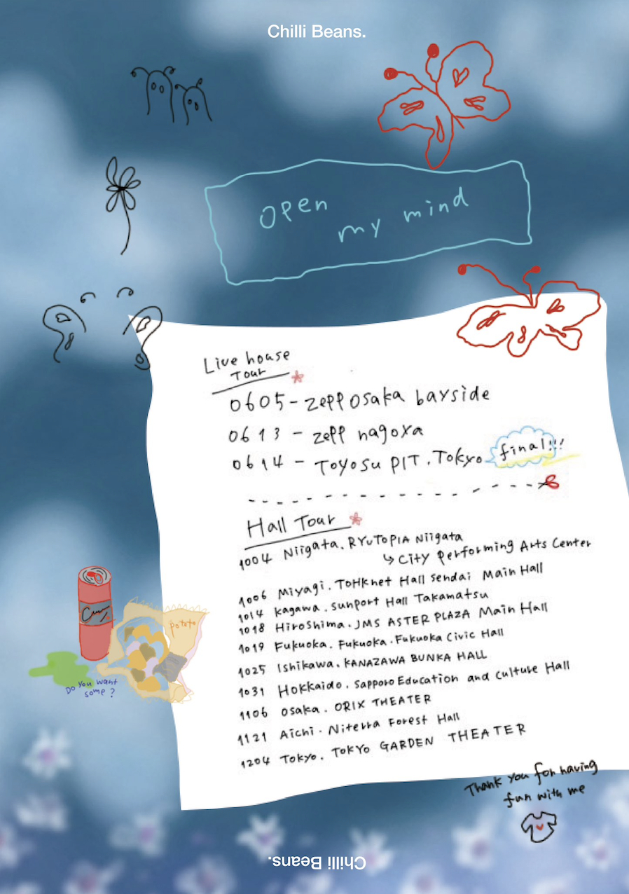 Chilli Beans.は、ホールツアー『open my mind Hall Tour』を10月から開催する。チケットはイープラス他にて発売中。