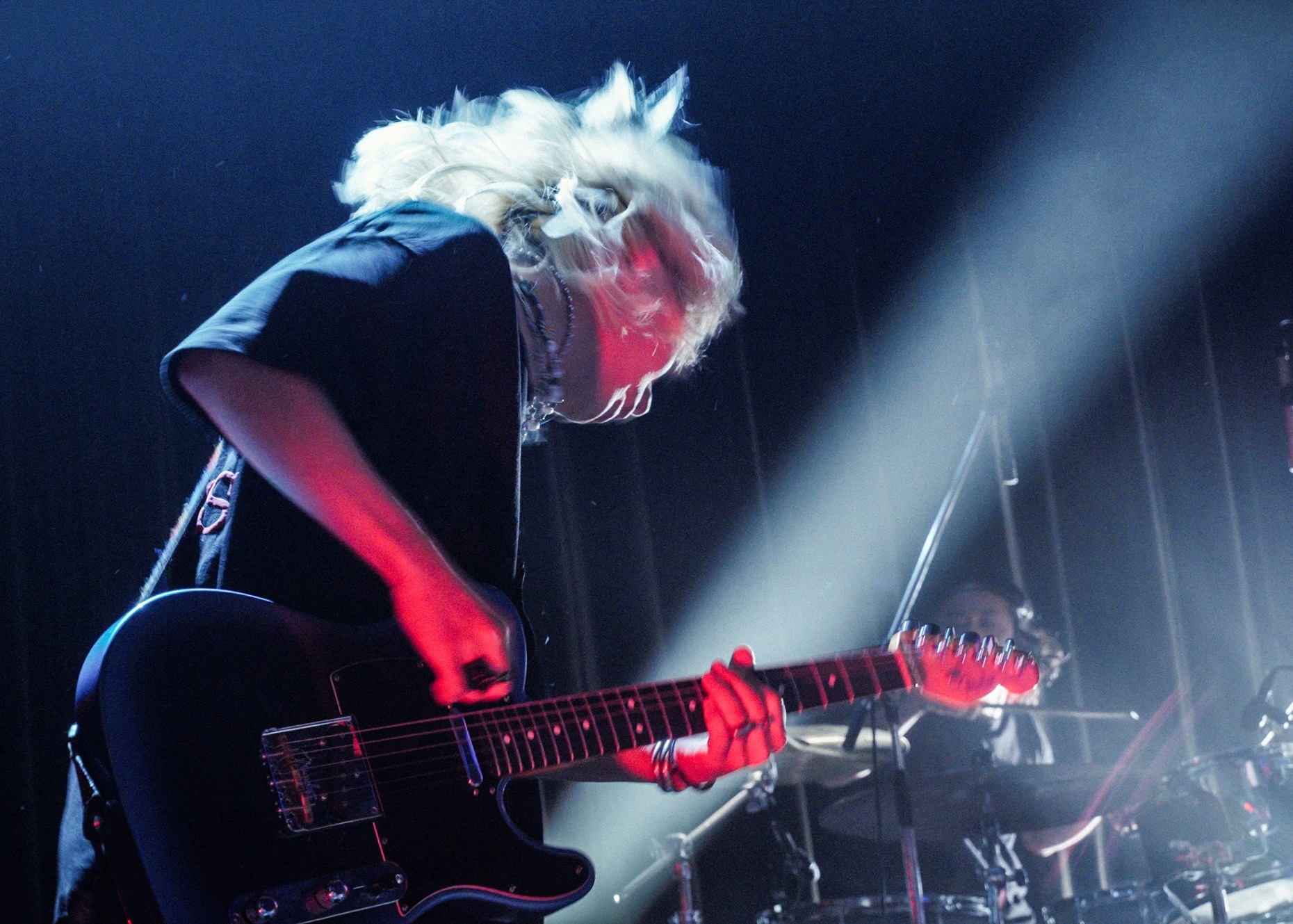 オープニングアクトのラッパー・aryyが温めた場内に、ピンク色の短髪のボーカルと、金髪にキャップをかぶったギタリストがふらりと現れる。ベースとドラムはサポートだ。ぶっきらぼうだが丁寧な言葉で挨拶すると、エレクトリックギターをつま弾いておもむろに歌い出す。1曲目は「Taxi」。ノイズまみれの破壊的なギターロックに、ループするダンストラックを混ぜ合わせた、激的なサウンド。コール&レスポンスを呼び掛けてフロアの熱気を高める、ふてぶてしい態度と個性的低音ボイスが特徴の、ボーカルはLinna Figg。