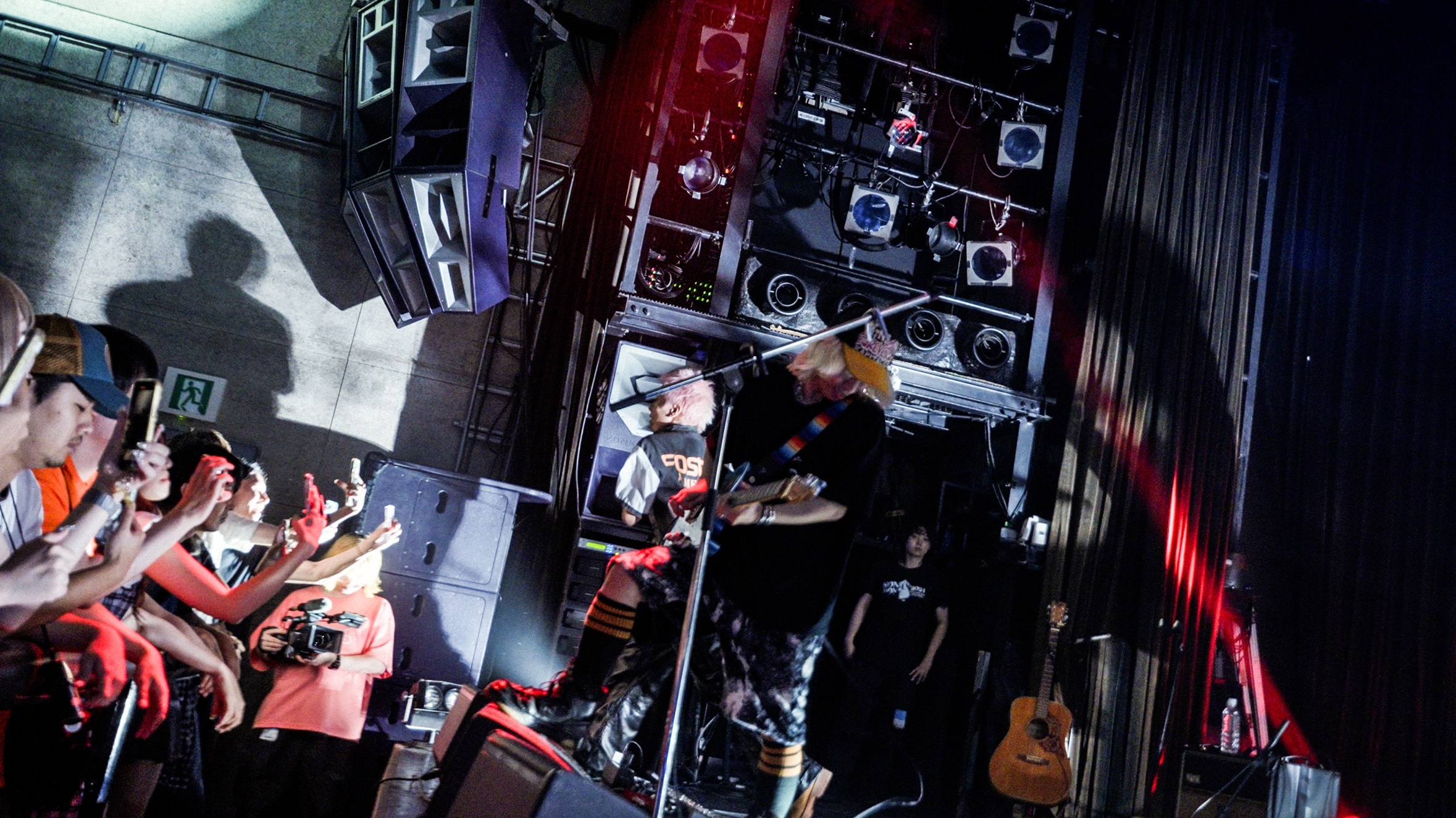 「Fuse」もまた、オーディエンスとの完璧な掛け合いコーラスが決まる代表曲。Linna Figgのパフォーマーとしてカリスマ性、世代を代弁するようなリリックのチョイス、ヒップホップとロックとダンスを横断するKyazmのサウンドメイク、オーディエンスの熱いシンパシーが生む、ベタつきのない独特の一体感。「Welcome to life」から「TOKYO FOREVER」へ、ロックサウンドの強みを最大限に生かして盛り上げる。オーディエンスをしゃがませてから跳ばせるパフォーマンスも交えて、最後までしっかり惹きつける。