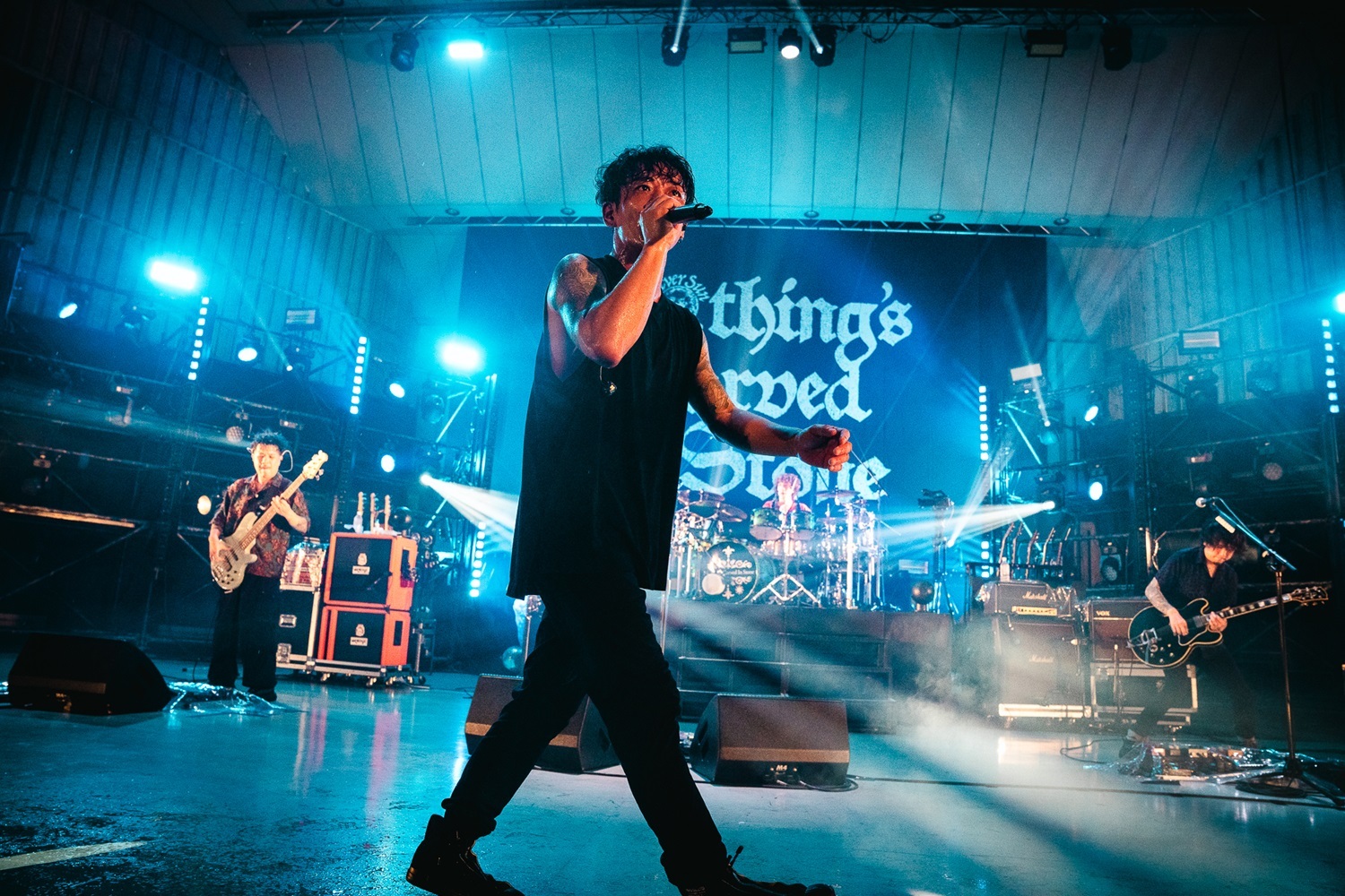 最新が最高であるというのは、バンドに限らずあらゆる表現者の理想とするところだが、それは決して容易いことではない。モチベーションを保ち続け、アンテナを尖らせ続ける大変さはもちろん、キャリアを重ねれば重ねただけ、超えなくてはならない壁──過去の自分達が高く立ち塞がるものである。そんなことは重々理解した上で、この日何度も思った。Nothing’s Carved In Stoneは間違いなく、今なおキャリアハイを更新していると。