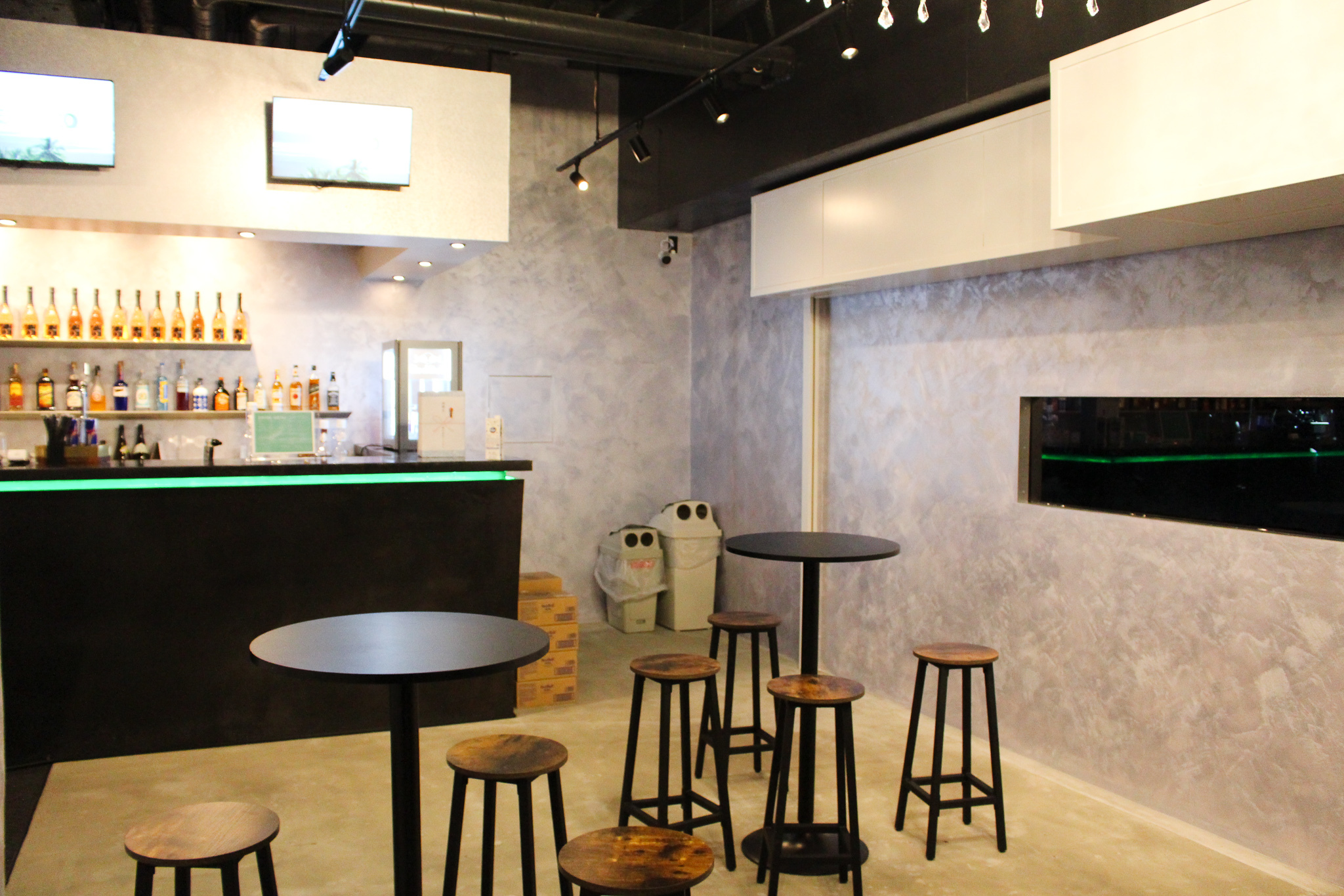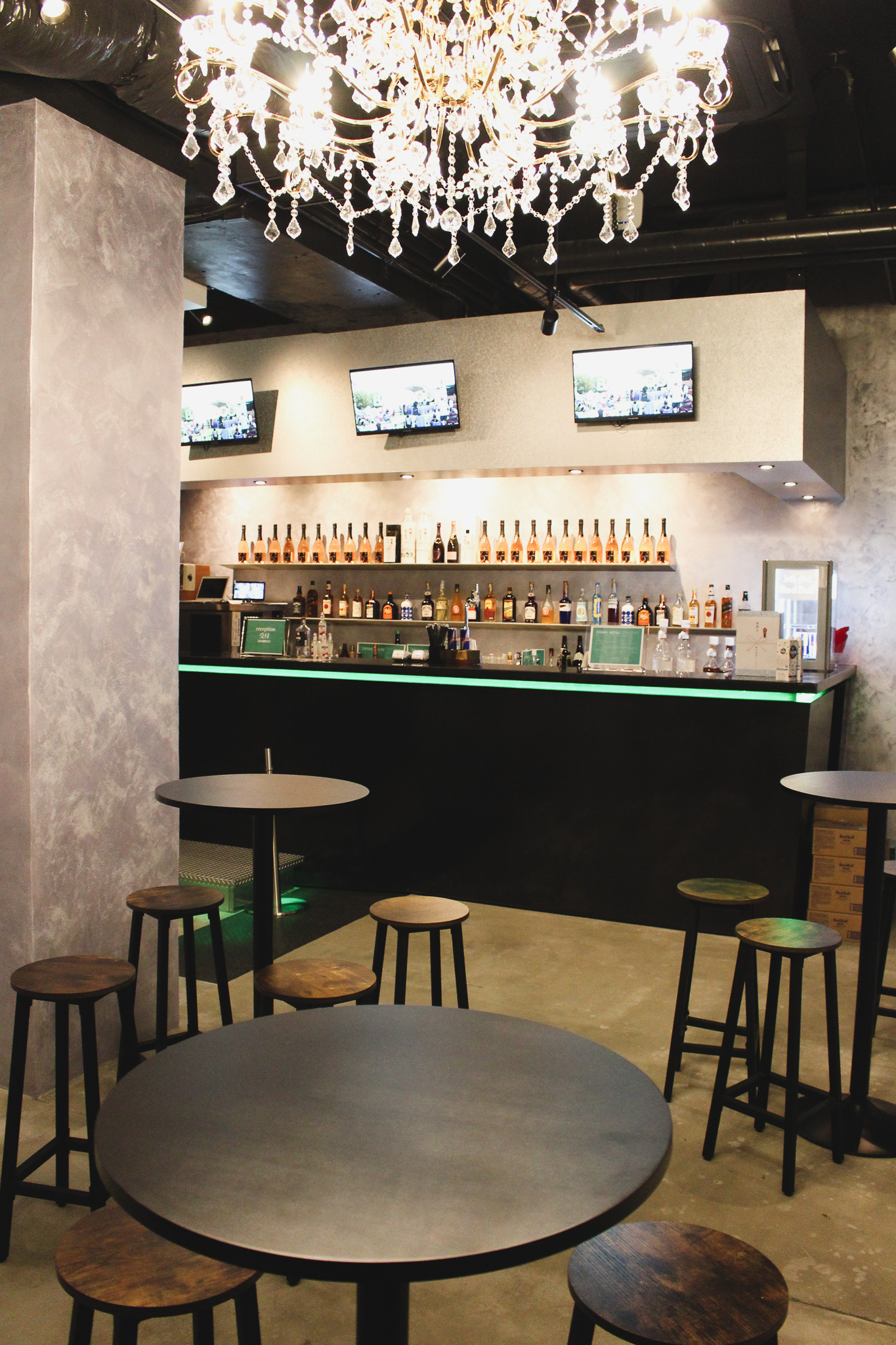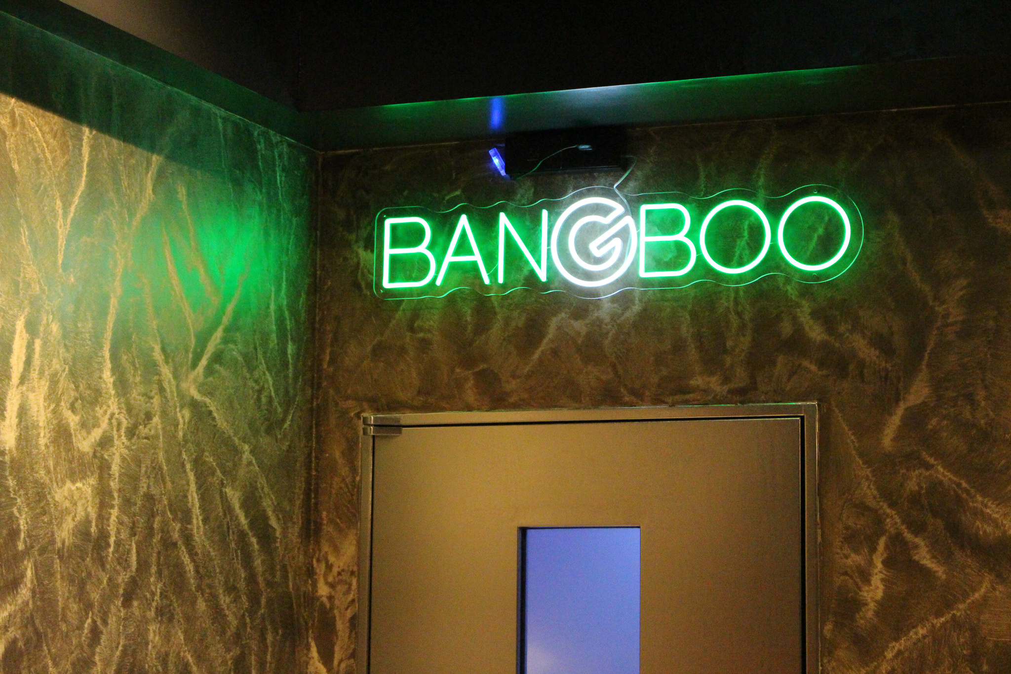 商店街からまず来場者を迎えてくれるのは、公演スケジュールが放映されるモニターとロゴのあしらわれた緑の看板。「シンプルかつ普遍的であることを目指した」という「BANGBOO」のロゴには、暖かみが滲む。地下1、2階に広がる「BANGBOO」へ向かう階段を下ると緑と白色のネオンライトが出現し、一気にライブハウスらしい雰囲気に。商店街から一歩進んだだけで突如現れる遊び場に高揚感も高まる。