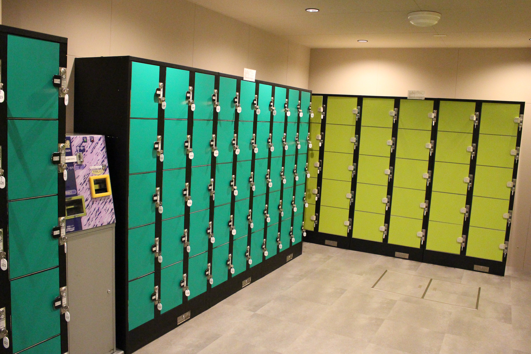 荷物を入れることのできるロッカーは、小型、中型が各60個、大型8個が用意されている。大型のロッカーはキャリーケースでも余裕を持って預けることのできるサイズ感なので、遠方からの来場時にも最適。ロッカーエリアには両替機を完備しており、「いざロッカーを使おうと思ったら、小銭がない……」というよくあるトラブルも解決してくれる。