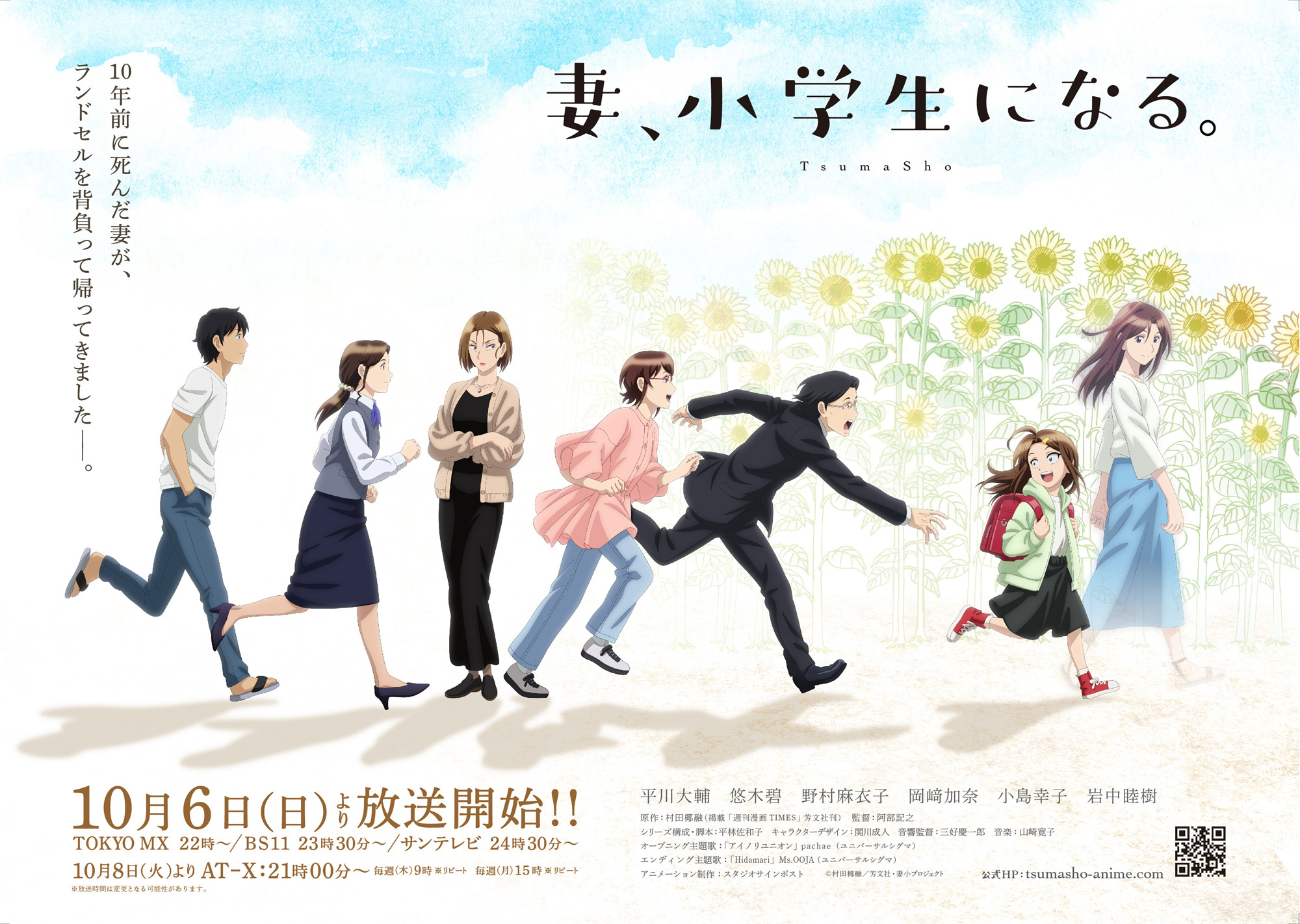 『妻、小学生になる。』は、累計部数300万部突破の村田椰融が描く家族再生の物語。10年前に妻を亡くし、失意と共に生きてきた夫とその娘の前に小学生となって現れた妻との再会を描く心温まる家族再生の物語となっている。2022年には堤真一が主演、石田ゆり子共演で実写ドラマが老若男女問わず感動の声が上がり話題となり、この度TVアニメとして10月6日(日)から放送スタートする。ぜひともアニメと共に楽曲に浸って欲しい。