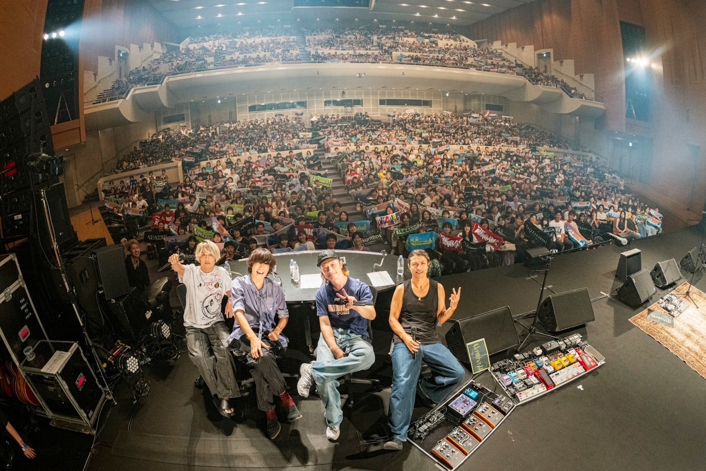 「相模原にはもう一つ、小田急線の駅があります。相模原駅です。相模大野駅は制しました。次は相模原を取りたいと思います!」(川上)というMCに導かれたのは、「閃光」。高揚感に満ちたサウンドと歌で、観客のテンションはピークへと達した。最後はシングル「SINGLE 2」収録「Backseat」。シンプルに研ぎ澄まされたビート、切なくも力強いメロディ、夏の情景と忘れられない〈愛しい人〉への想いを描いた歌詞が共鳴し、ライブはエンディングを迎えた。