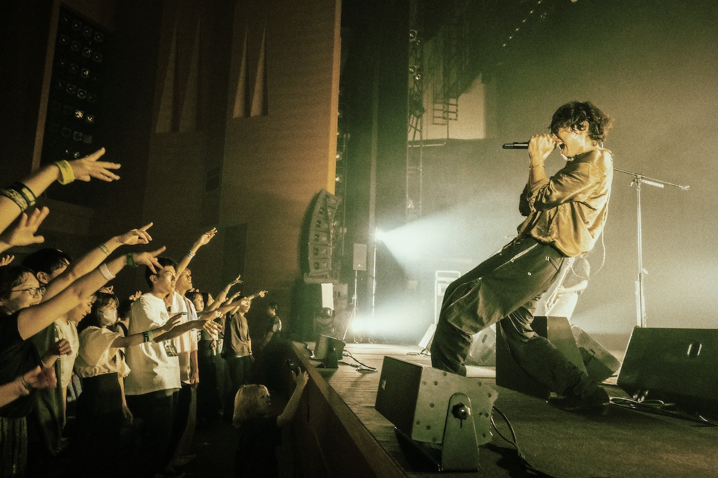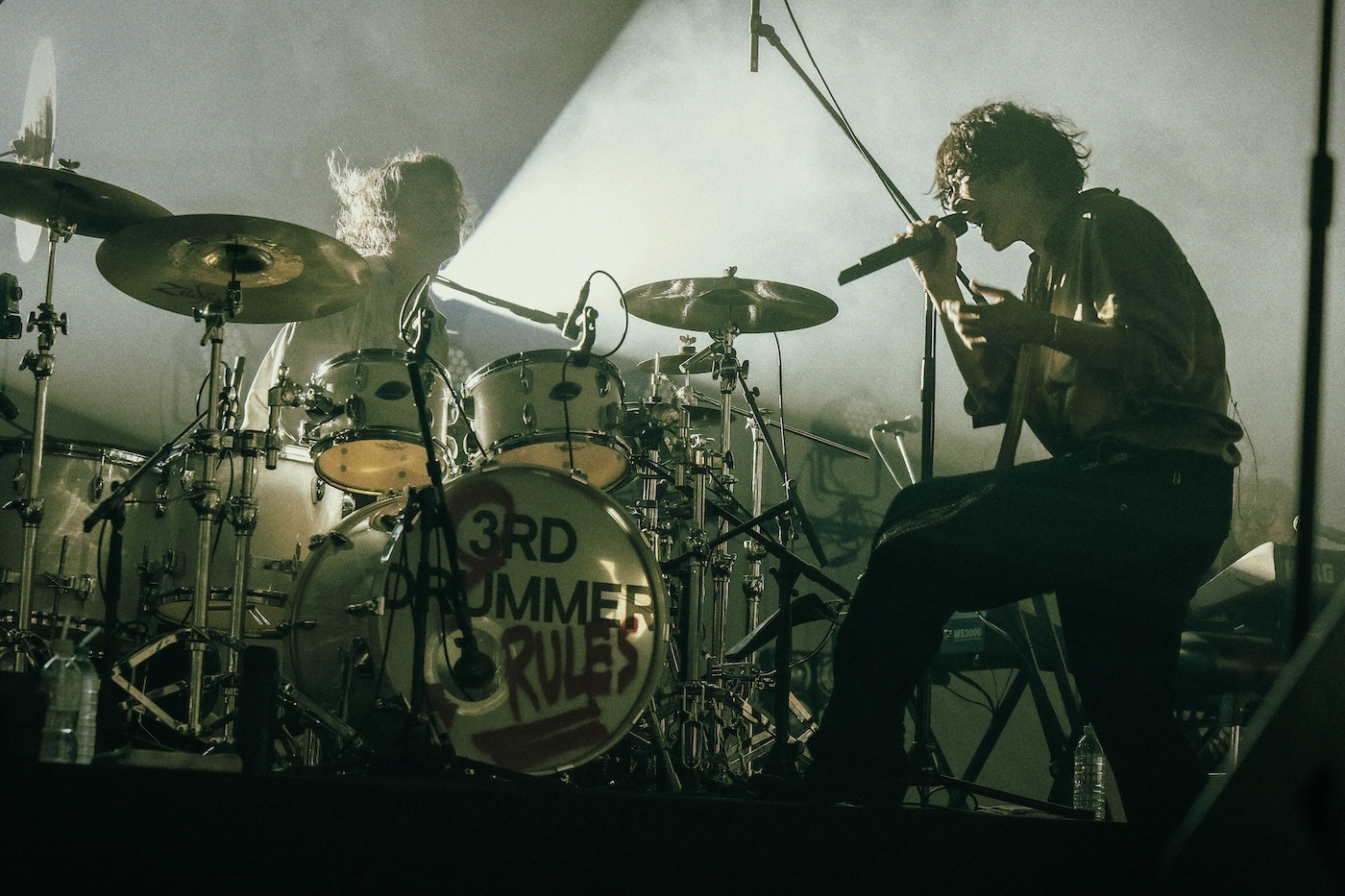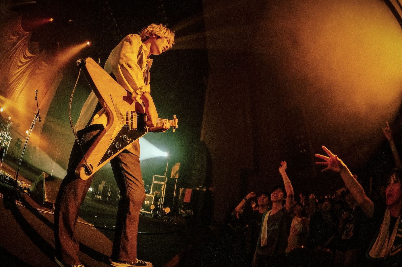 というやり取りの後は、シングル「SINGLE 2」に収録された「真夜中」(drive ver.)。インディーズ時代の楽曲をリアレンジ、再録した楽曲だが、ドライブ感に貫かれたバンドサウンドによって観客は気持ちよさそうに身体を揺らしていた。