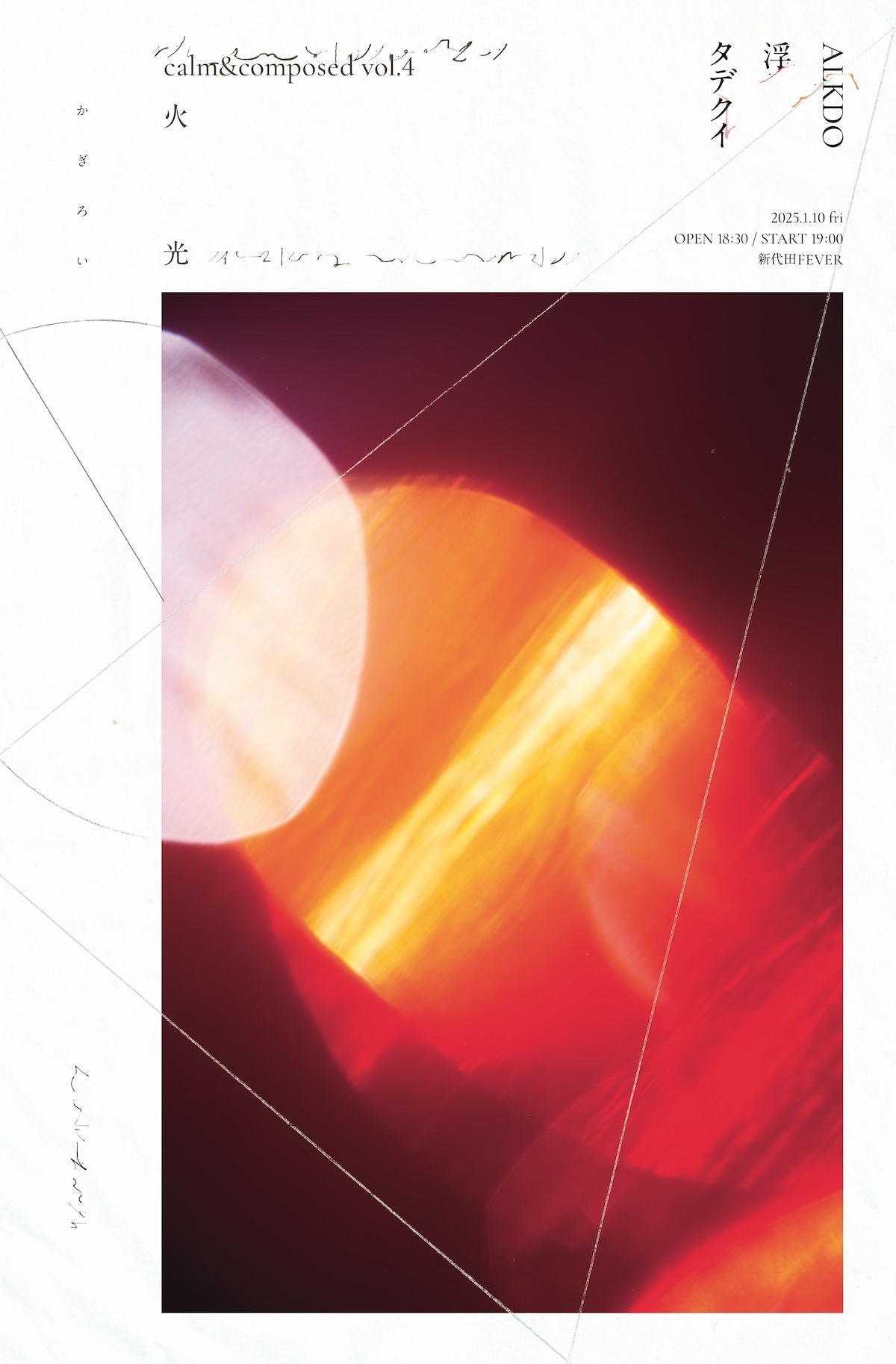 『calm&composed』はAIR FLAG Incによるライブイベント企画。第四回目となる今回は、ALKDO、浮、タデクイの3組が出演する。
