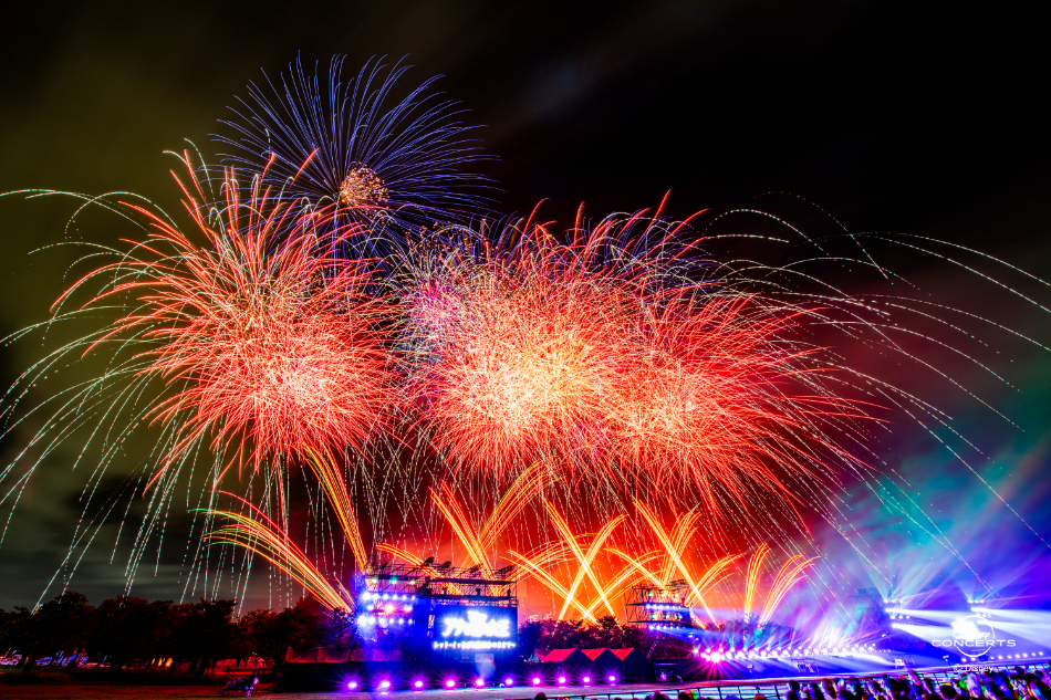 大阪会場は鑑賞エリアと打ち上げ場所がとても近い。誰もが花火の大きさに圧倒され、客席のあちらこちらから感嘆の声が上がり、一曲ごとに拍手が沸き起こる。目の前に広がる夜空を花火が埋め尽くし、まるで空から星が降ってくるかのような瞬間が何度も楽しめた。
