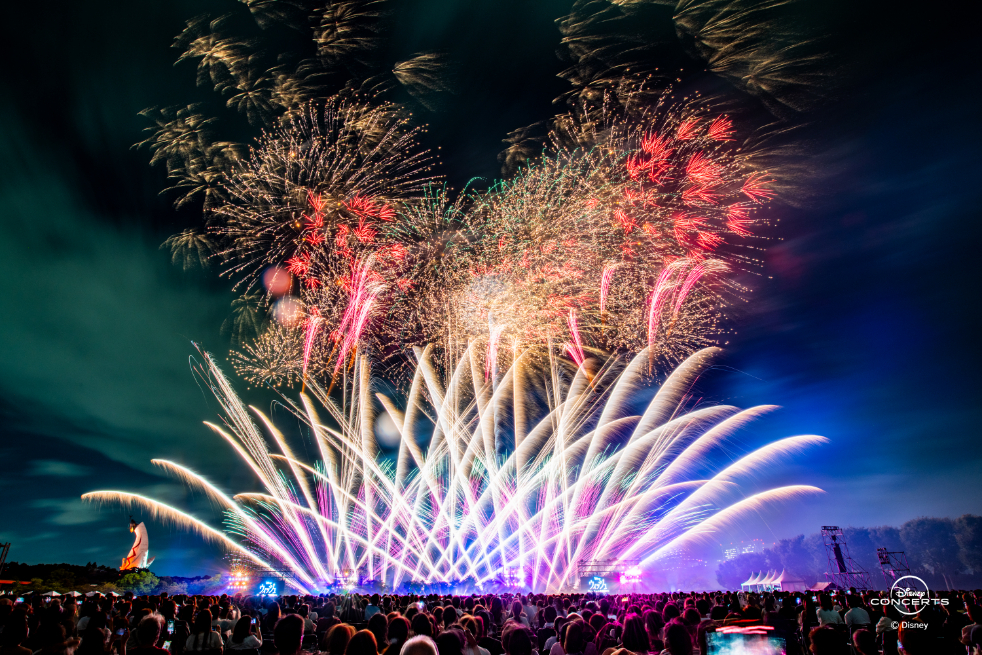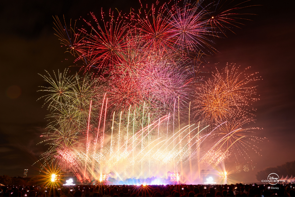 クライマックスとなる《フィナーレ》は、「トライ・エヴリシング」(『ズートピア』)、「本当のわたし」(『ミラベルと魔法だらけの家』)と、心が軽くなる音楽から始まり、「パート・オブ・ユア・ワールド」(『リトル・マーメイド』実写版)、「サークル・オブ・ライフ」(『ライオン・キング』)と、胸を熱くする音楽へと続く。そして『アナと雪の女王』の「レット・イット・ゴー」(英語歌)で心を解放させる……。名曲の数々に呼び起こされる感情をさらに増幅させてくれた花火は、盛大な輝きを見せて終了。余韻とともに幕を下ろした。