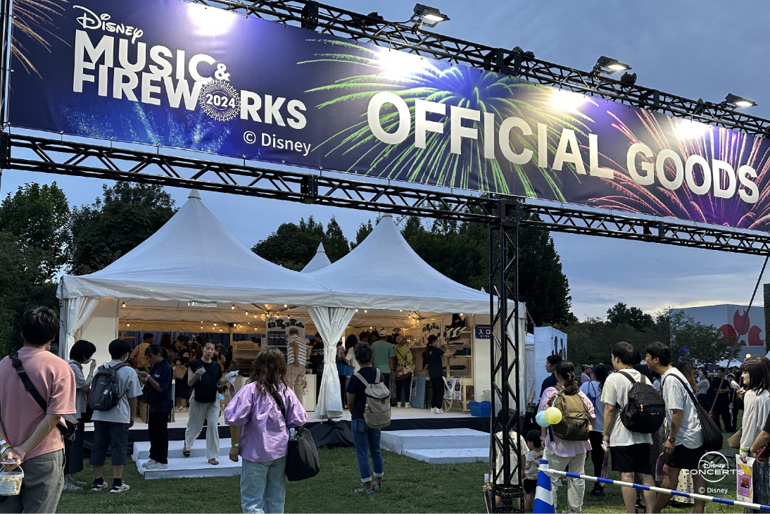 大阪公演の会場は、緑豊かな万博記念公園。来場者は、打ち上げ会場への道のりや鑑賞エリア後方に設置されたオリジナルフォトスポットで記念撮影をしたり、オリジナルグッズを購入したりと、早くもディズニーの世界に浸っていた。