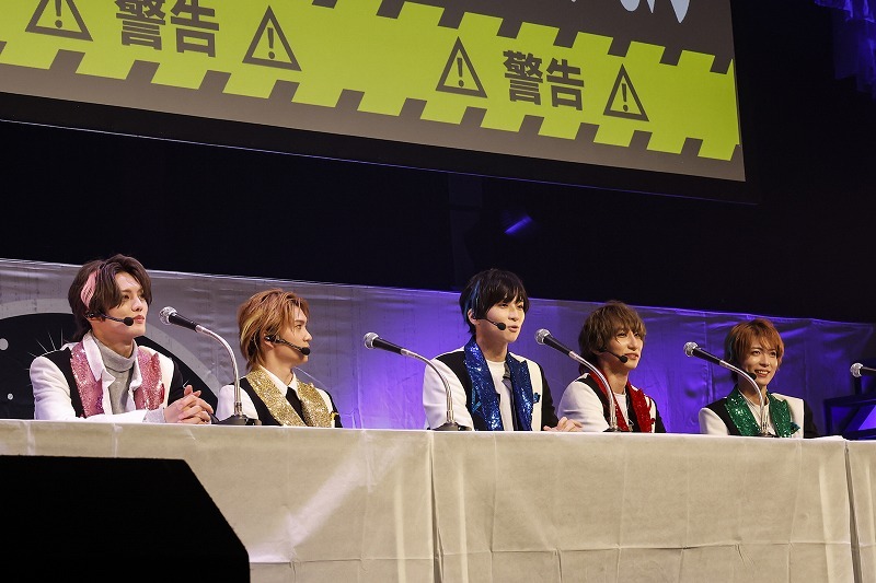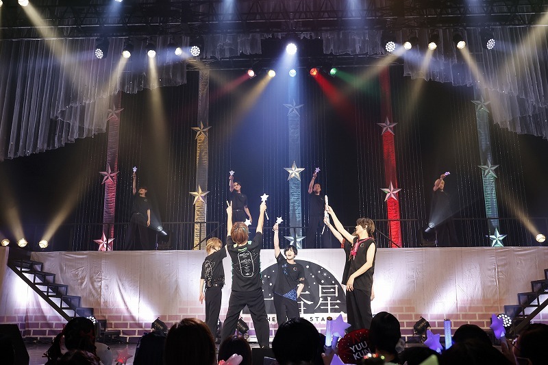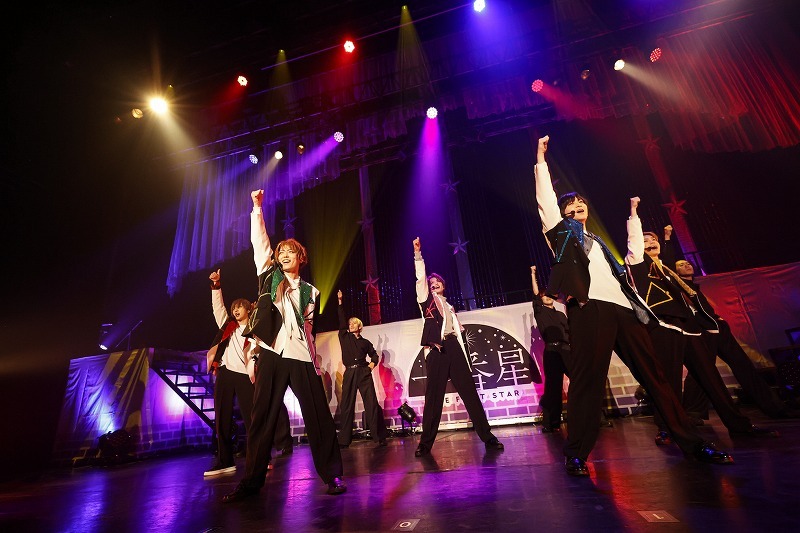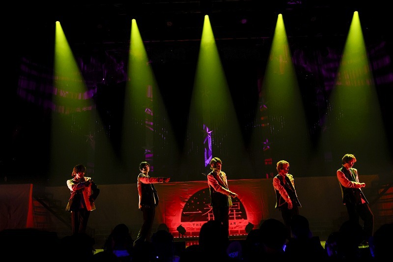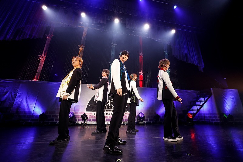 “THE FIRST STAR”が誕生した「演劇ドラフトグランプリ2023」では彼らの楽曲は1曲だったが、今回のLIVEでは11曲を披露。全員で歌う曲だけでなく、ハニー(木津つばさ)とほゆ(松井勇歩)が疾走感のある「一声」で会場を盛り上げれば、ゆーくん(福澤 侑)とりょっちん(高橋怜也)が「W・A・N ・T」で妖艶な雰囲気で魅了し、「Love to One」では、よしぽんとハニー躍動感あふれる歌詞に合わせてが歌い踊る。