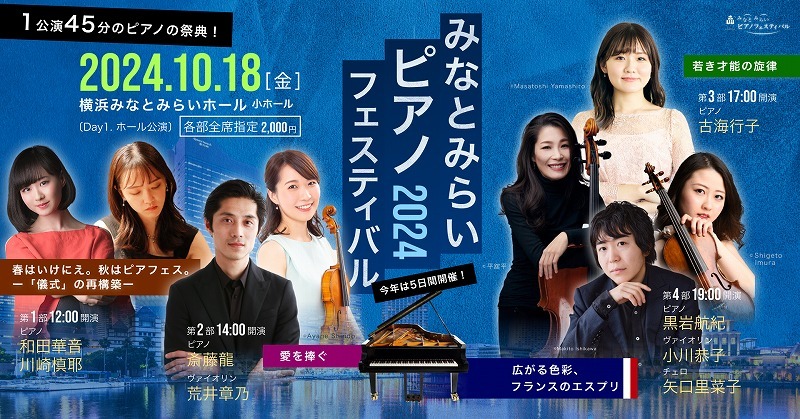 2024年10月18日(金)から20日(日)、そして11月9日(土)と10日(日)の全5日間にわたり、日本最大級のピアノ祭典『みなとみらいピアノフェスティバル 2024』が開催される。