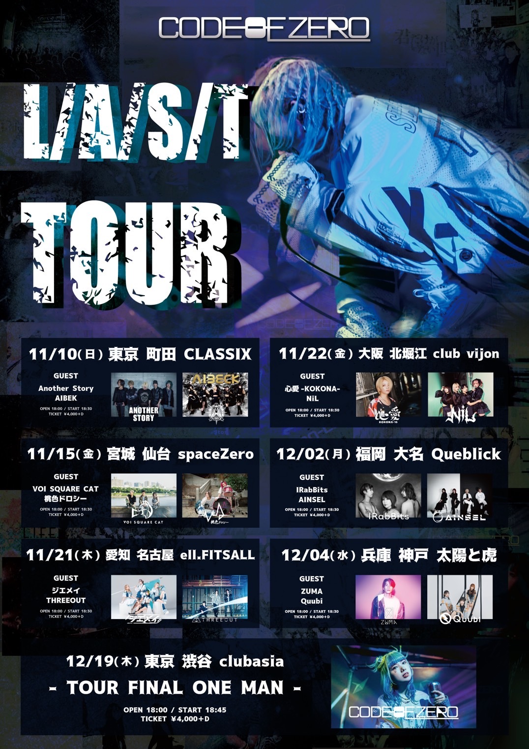 女性ボーカリスト0Cによるバンドプロジェクト“CODE OF ZEROが、2024年11月10日より開催する『L/A/S/T TOUR』の全ゲストが解禁となった。