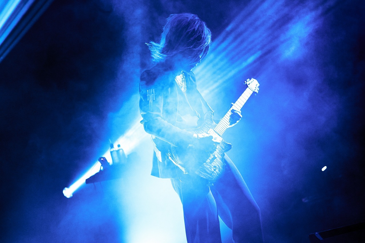 続く、タテノリの「GABRIEL ON THE GALLOWS」にヨコノリの「FADELESS」と、文句なしのラウドロックにキャッチーな歌メロを組み合わせたナンバーでは、“羽”を失っての“堕天”という退廃的な世界観を描出。後者ではアウトロのリズム隊ソロでベースの位置にスポットが当たり、湧き上がる“REITA!”の声が彼の存在を其処に確かに刻んでいく。