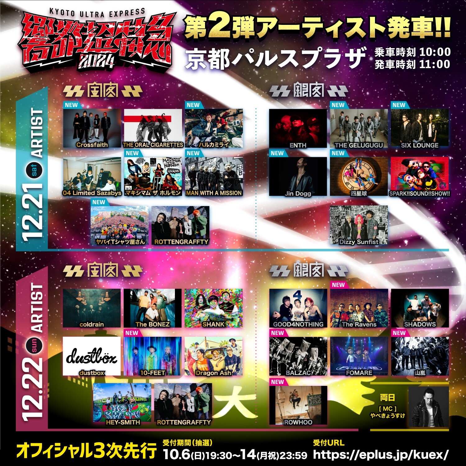 12月21日(土)・22(日) に京都・京都パルスプラザで開催される『響都超特急2024 ~KYOTO ULTRA EXPRESS~』から、出演アーティスト第二弾が発表された。これで、出演アーティストが出そろい、日割り、出演ステージも明らかになった。