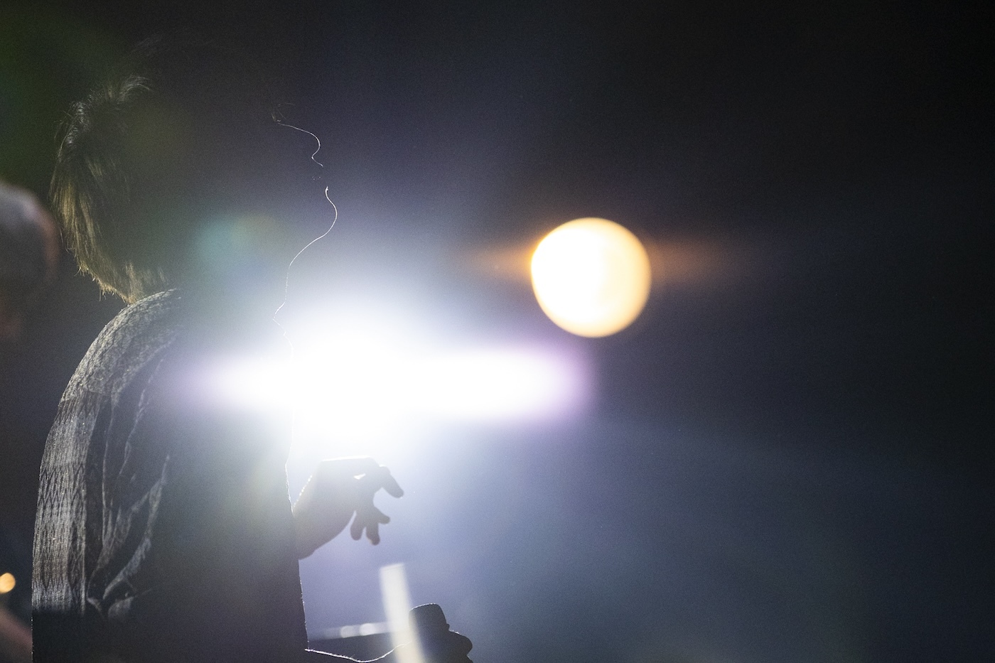 赤い光の中で始まった「修羅日記」からのダークなセクションは、禁断の世界の扉を開いたかのように、歌、演奏、照明演出が相まってカオスを生んでいった。「senseitoseito」の強さは今も忘れ難い。目が眩むような赤い閃光の下、狂気や恐怖すら感じる絶唱を響かせていき、憑依と言うべきか、音楽という芸術に身体を貸した伊東歌詞太郎という表現者の深淵を除き込んだ気がした。一転して、「天才になろうぜ~ミアキスの選択~」は清々しく、「からくりピエロ」ではクラップを先導して軽妙に歌唱。様々な表情を曲ごとに見せていくのだった。