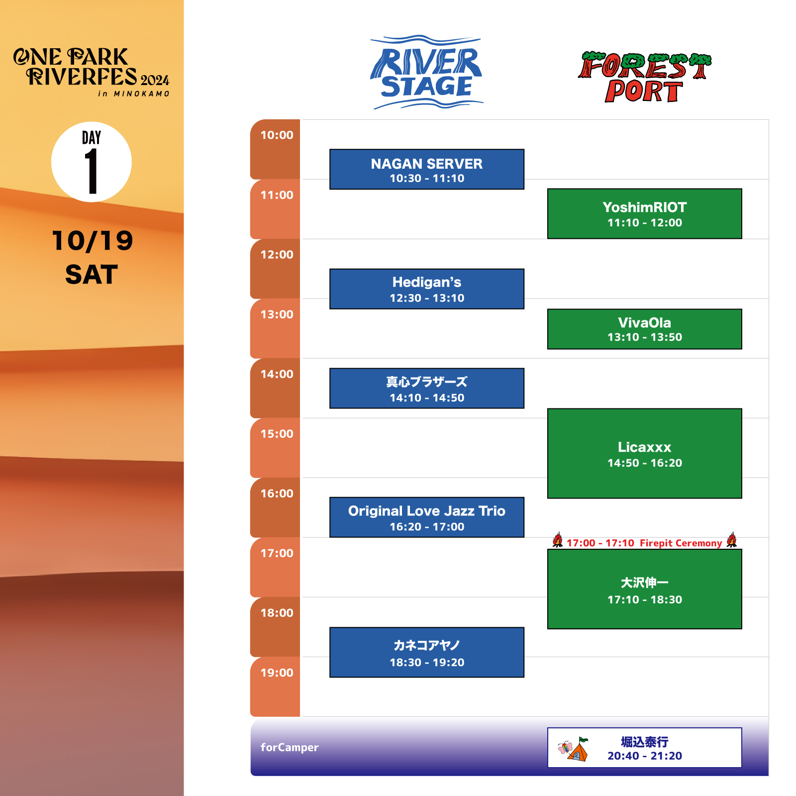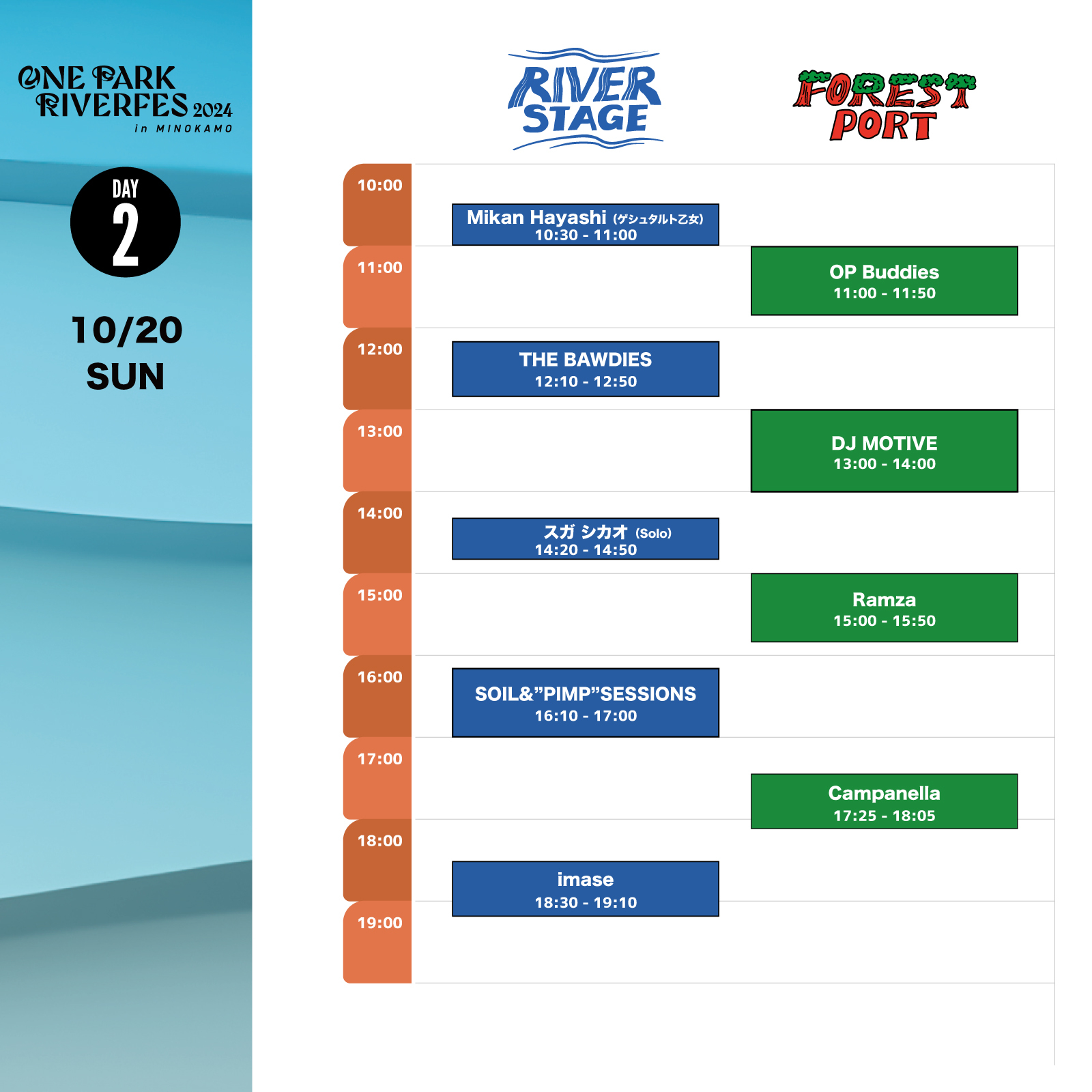 10月19日(土)・20日(日)の2日間にわたり、岐阜県・リバーポートパーク美濃加茂内特設会場で開催される『ONE PARK RIVERFES2024 in MINOKAMO』から、各日のタイムテーブルが発表された。