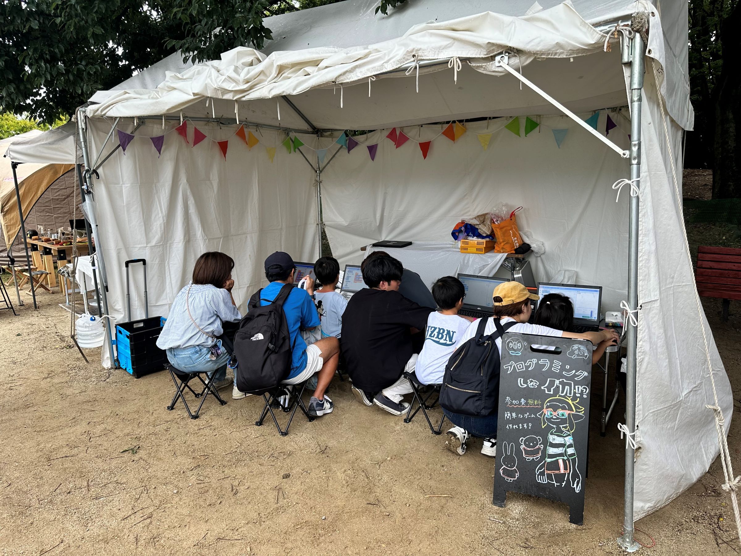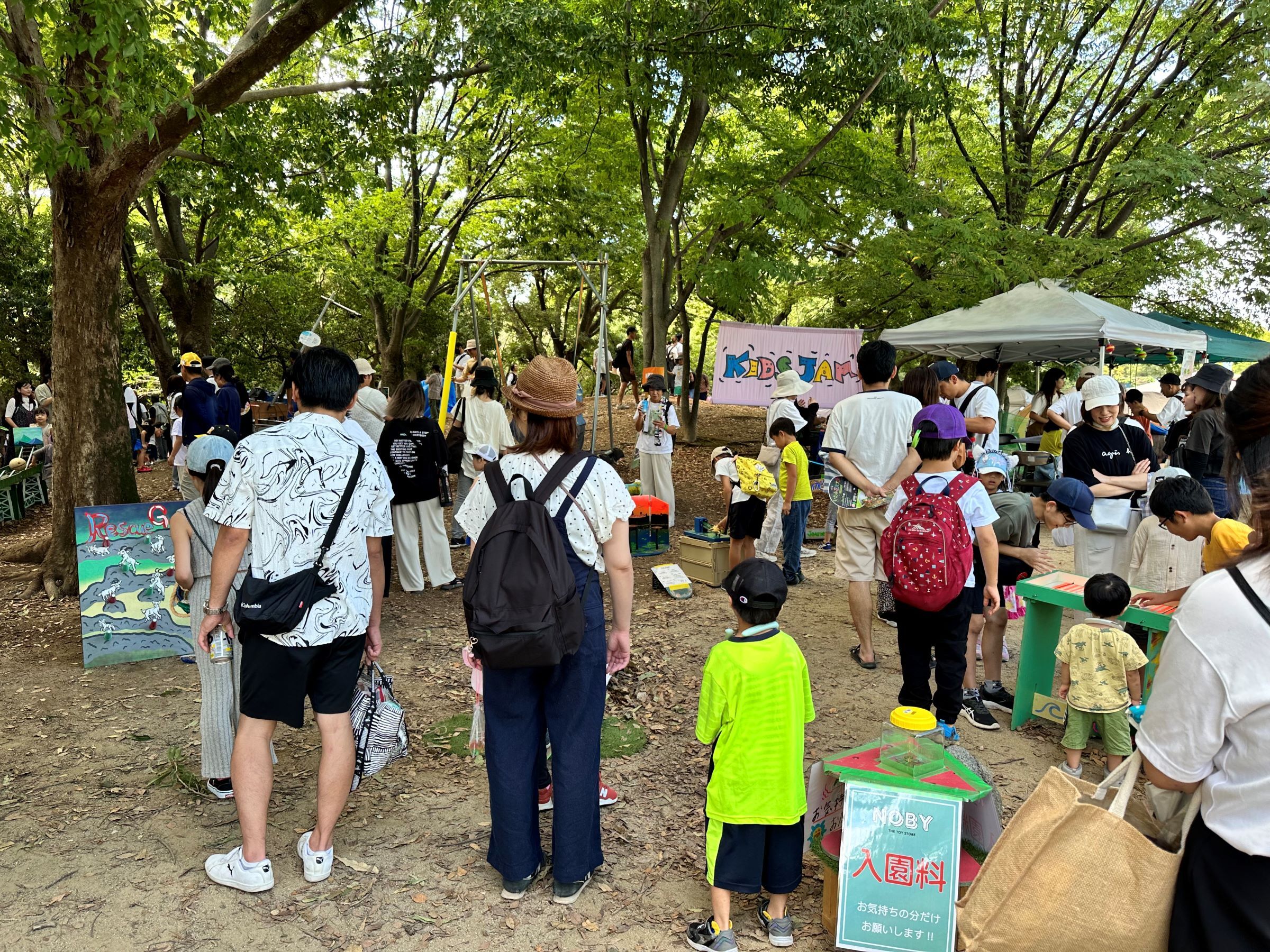 そして個人的に最高! と感じたのはキッズが楽しめるコンテンツの充実ぶり。キッズエリアには子どもDJ体験や楽器を作るワークショップ、木に括り付けられたブランコや公園の木を利用した巨大迷路、伊丹昆虫館の展示や射的、プログラミング体験までが揃ううえ、キッズエリアの外にも水鉄砲を使ったサバゲー体験や手形でのアート制作、ミニ四駆大会やBMX体験会、くじびきに動物の餌やり体験まで。書き出したらキリがないほどのコンテンツが揃う。中でも目にとまったのはかわいい歯ブラシをはじめとした歯みがきグッズや子ども用歯みがき粉をその場でいろいろ試せる「ハミガキ団」のブース。団長であるハミージョさんは大阪市内で歯科医として活躍しながら、歯みがきを身近に感じてもらおうとイベントに出展している他、なんと救護の資格も持っているという。小さな子どもから小学生までがワクワクできること揃いで、子どもが帰りたがらない。