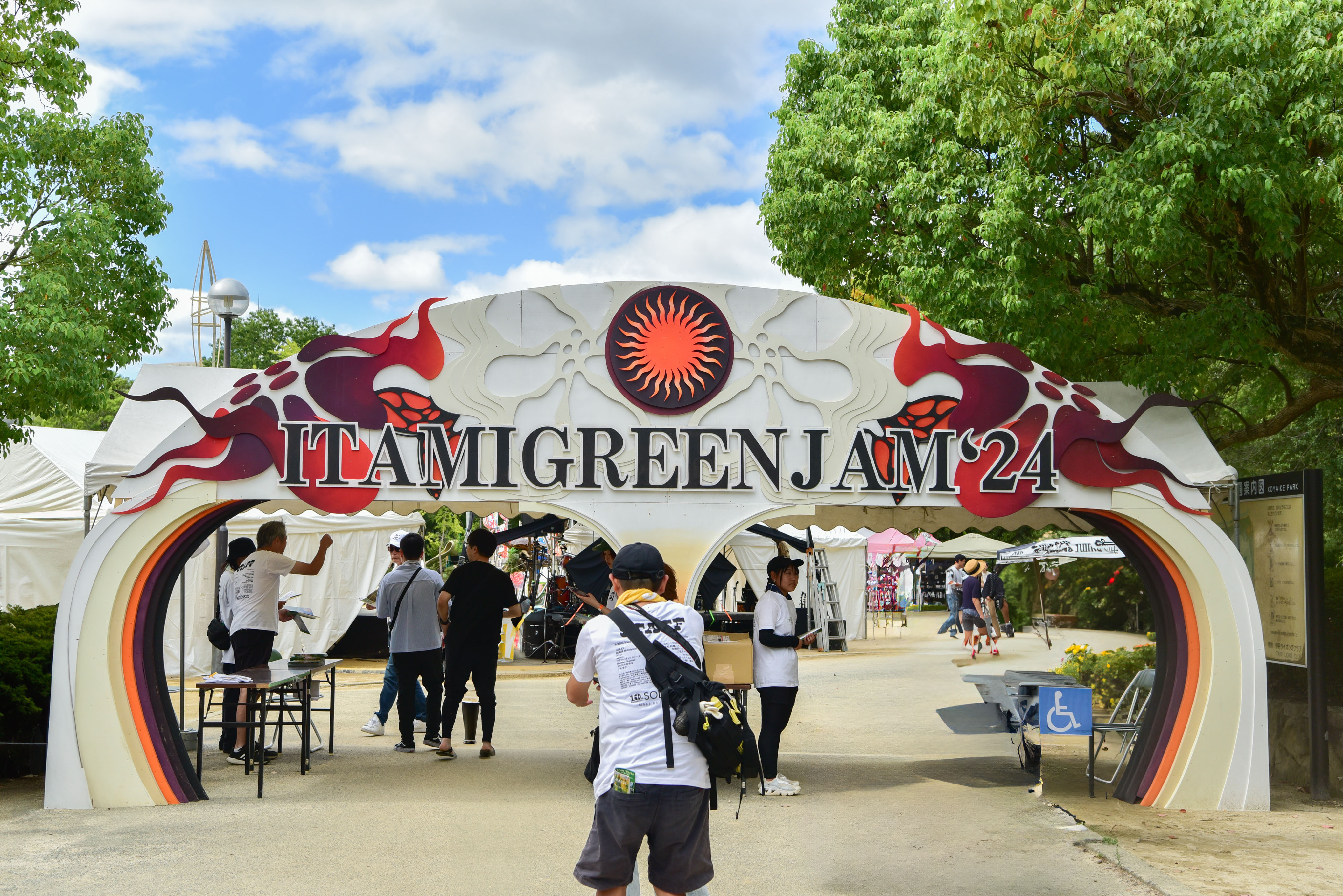 関西屈指の無料野外フェス『ITAMI GREENJAM’24』が9月22日(日)、23日(月・祝)の2日間にわたり兵庫県伊丹市の昆陽池公園で開催された。2014年に歴史をスタートさせたこのイベントは、数々のアーティストによるライブを主軸に複数のマーケットエリア&フードエリア、子どもたちが思い切り遊べるキッズエリア、デコラティブに彩られたアートゾーンなどが自然豊かな市民公園を舞台に展開される地域密着型イベントだ。特筆すべき点としては、地方で開催される無料の野外フェスとしては関西最大級規模でありながら「市民表現のプラットフォーム」を掲げ、実行委員をはじめ企画・制作・運営などに地元を愛する人々が携わりDIYで行うことだ。主催者たちの言葉を借りるならば、「最高の素人達で作る市民表現文化祭」であり、「ボーダレス表現文化祭」。実は存在を知っていながらも『ITAMI GREENJAM』初体験だった筆者。2日間たっぷりとこのイベントに身を置いて感じたのは「こんなフェスは他にはない……!」というかなり強烈な肌感覚。なぜそう感じたのか、このレポートで追体験してもらえたら嬉しい。