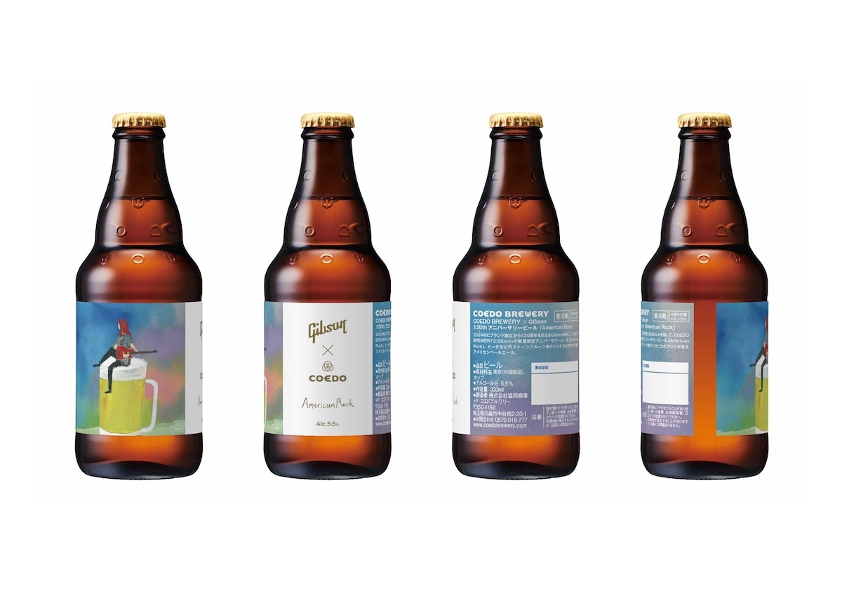 そして、今年ブランド創立から130周年を迎えるGibsonを祝して限定醸造されるアニバーサリービール「American Rock」「British Rock」の2種類(瓶)のラベルデザインも公開。こちらも近藤康平による描き下ろしで、音楽とビールへの愛が溢れる限定ラベルとなっている。