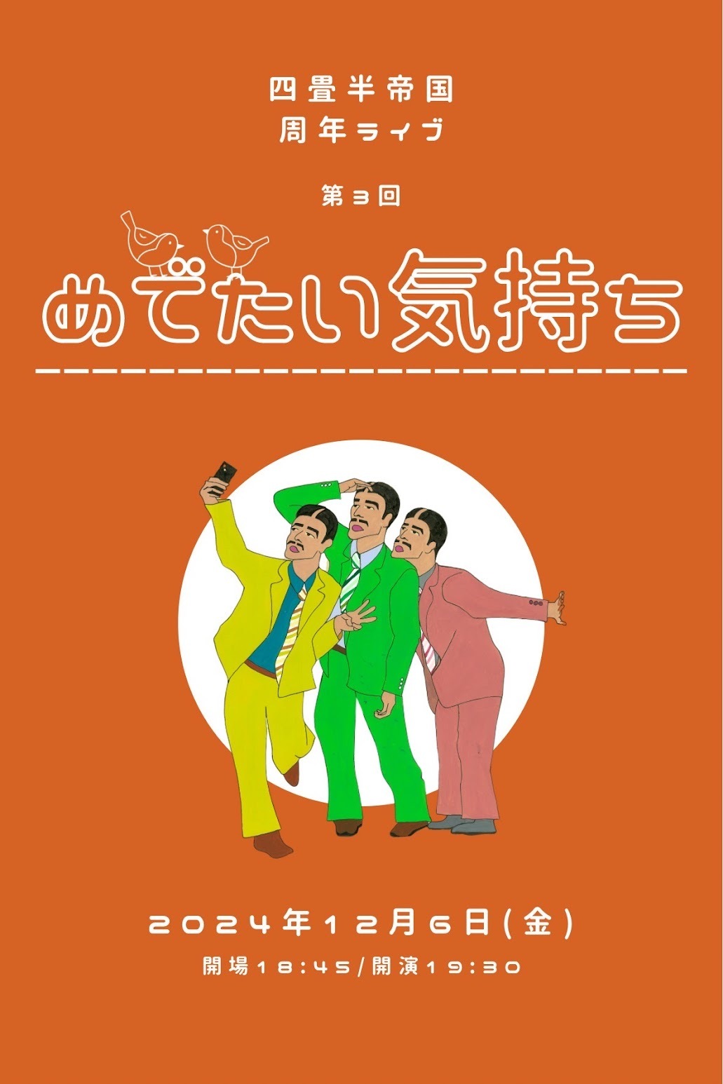 2024年12月6日(金)に、大阪・amHALLにて『四畳半帝国 周年ライブ 第3回 -めでたい気持ち- 』の開催が決定した。