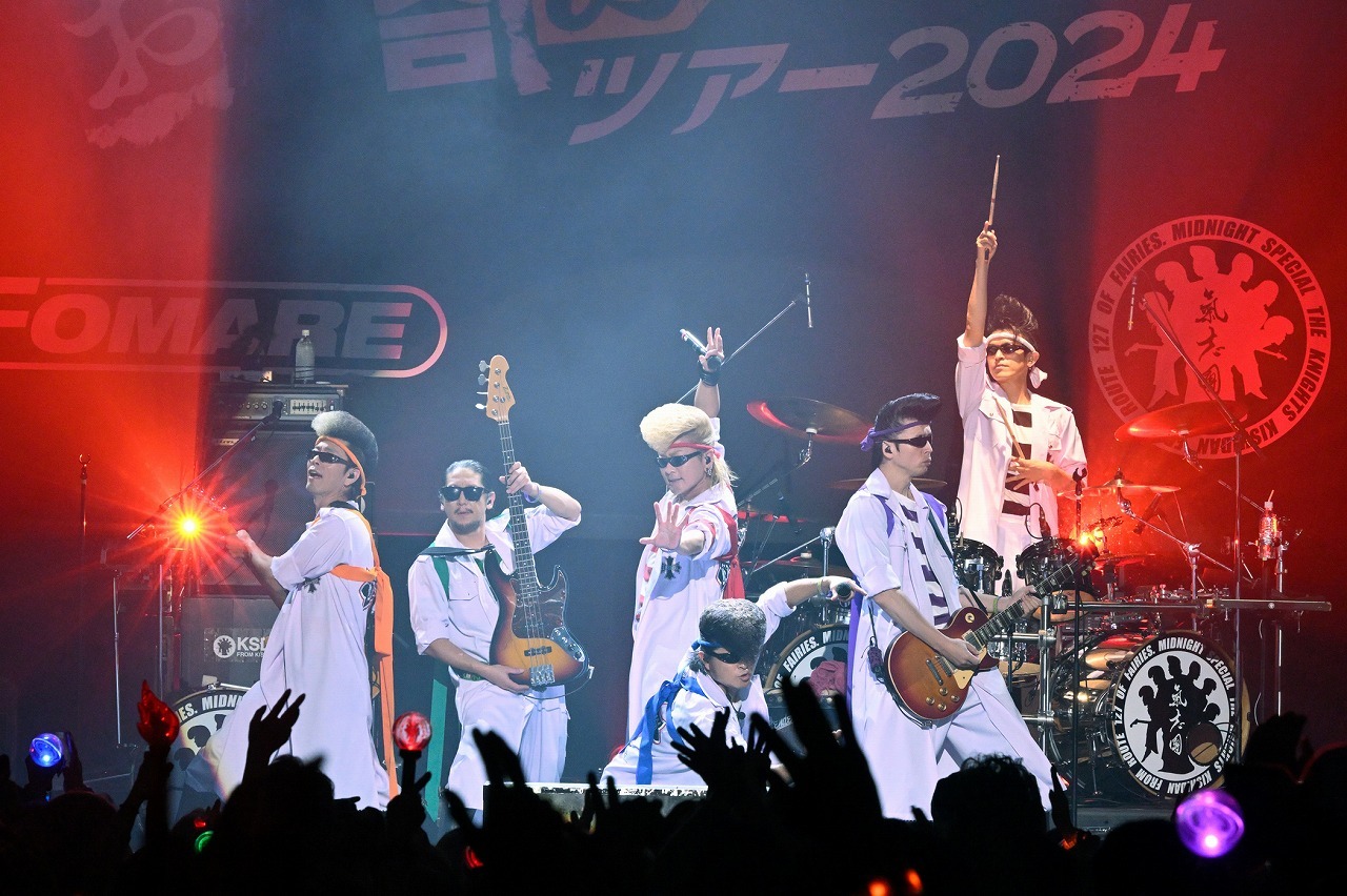「湘南乃風とタイマンのつもりで来たんだけど、お見合いだったぜ!」と始まったMCでは、ユーモア満載&サービス精神旺盛のトークでたっぷり笑わせた綾小路。湘南乃風も出演する『氣志團万博2024』について告知すると、「みんなに来て欲しいから、俺たちの街の歌を歌います」と、綾小路のアカペラで始まった「落陽」を披露。魂込めた歌と演奏でしっかり魅せると、みんなお待ちかねの「One Night Carnival」へ。「俺たちの最高の兄弟分を紹介するぜ!」と綾小路の呼び込みでステージに登場した湘南乃風と共に、「ここにいる奴ら全員で行くぜ、ピリオドの向こうへ!」と始まったこの曲。湘南乃風の男気溢れるラップパートが加わり強靭さを増した「One Night Carnival」は、天下無敵のカッコ良さ! 会場中がダンスと歌声を合わせて、最高潮の盛り上がりでGIGを終えた。