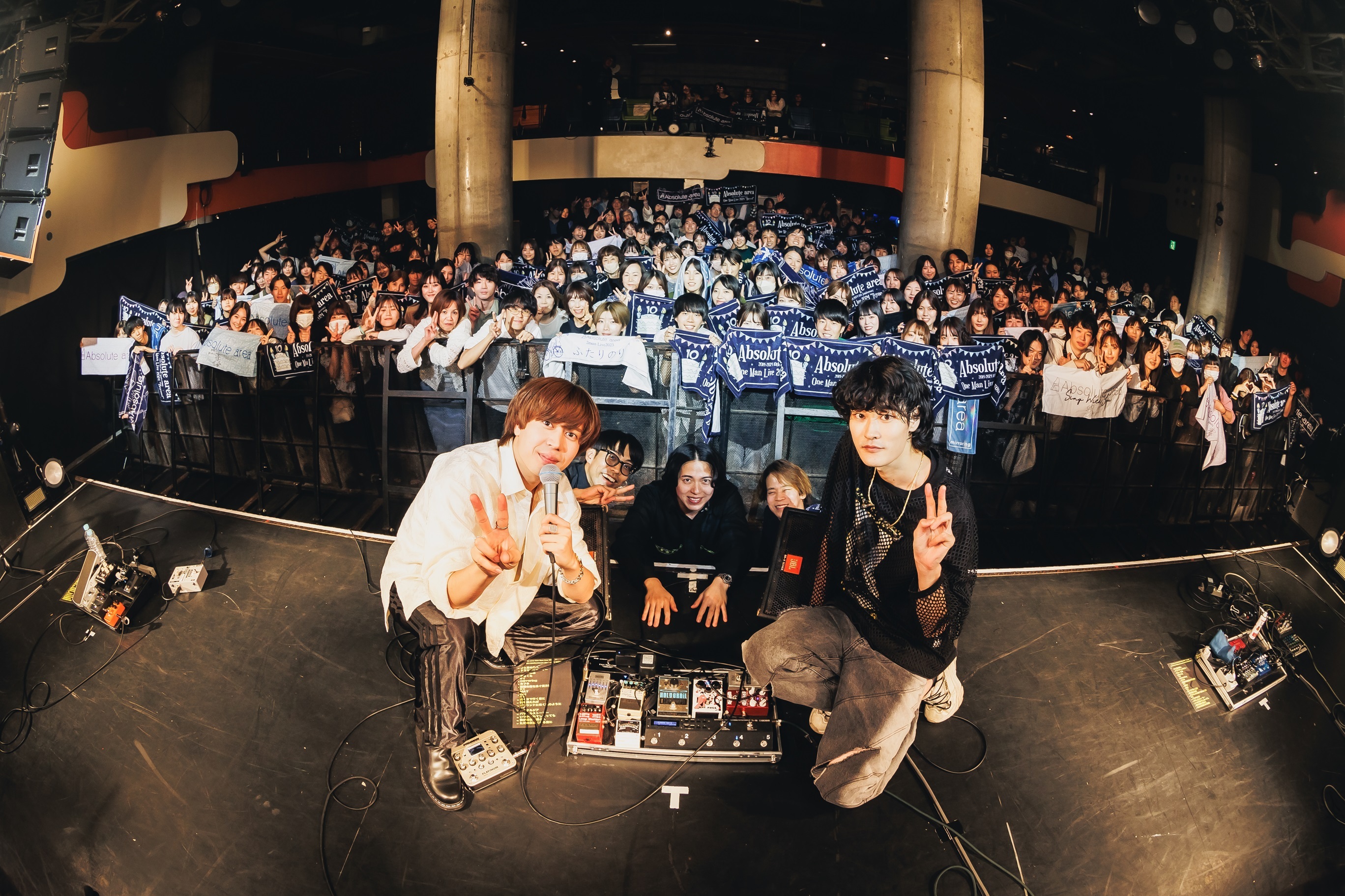 クリスマススペシャルライブが12月20日、21日に代官山 SPACE ODDで開催される旨が発表された後、「今日という節目を越えて、また続いていく明日へ向かって歌いたいと思います」という言葉が添えられてスタートした「続く明日へ」。力強い足取りを感じるこの曲は、結成10周年という節目を経てさらに前に進もうとしているAbsolute areaの姿を伝えてくれた。演奏が終了した後、観客の笑顔が煌めくフロアを背景にして記念撮影をした山口、萩原、サポートメンバーの3人。ステージに並んでお辞儀をした彼らを温かな拍手が讃えていた。こうして終演を迎えた『Absolute area One Man Live 2024 “Beyond”』。美メロの宝庫であるこのバンドの魅力を再確認できるライブだった。