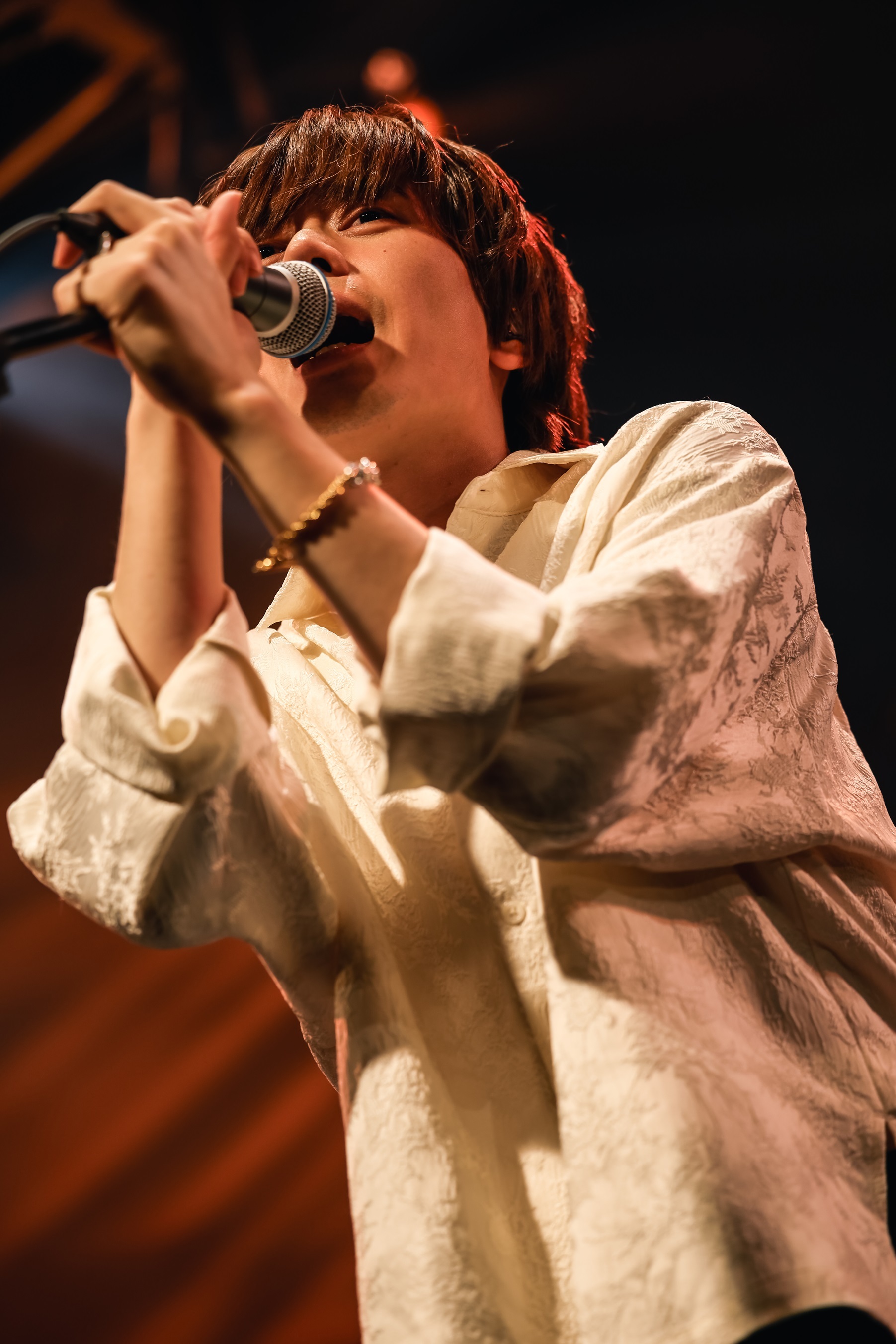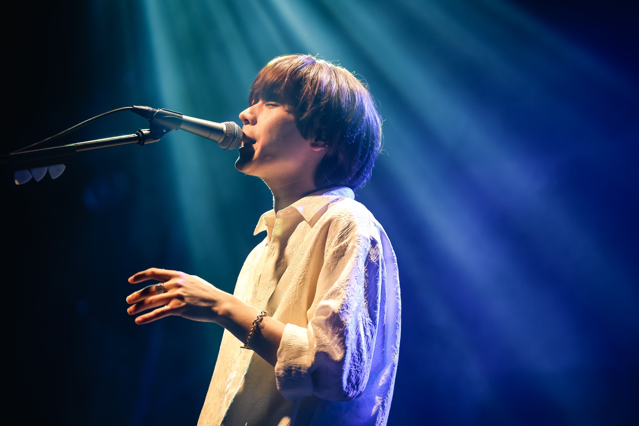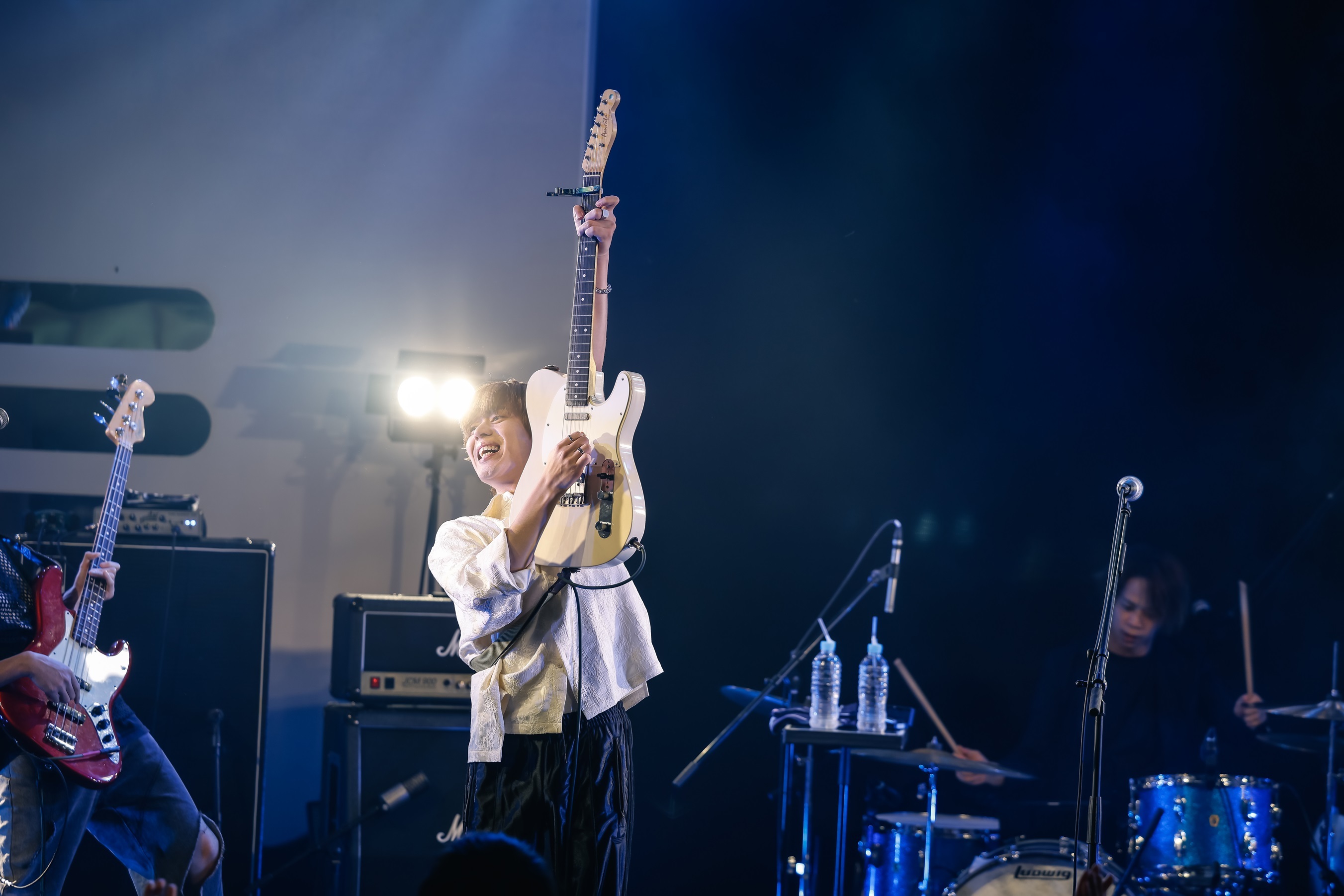 山口諒也(Vo/G)と萩原知也(B)、3人のサポートメンバーを出迎えた大きな拍手。そして「ひと夏の君へ」がスタートすると、会場は穏やかなエネルギーで満たされた。観客の手拍子が爽やかに加わった「ドラマチックサマー」。瑞々しいメロディが躍動した「ビニール傘」。透明感に満ちた歌声を浴びながら観客が一斉に拳を掲げた「がらくた」……序盤の4曲を披露した後、「お元気ですか? 楽しんでますか?」と観客に問いかけた山口。「今日のためにいろいろな準備をしてきました。一昨日髪を切ったり、洋服を買いに行ったり……そういうんじゃないですね(笑)。最近はやっていなかった曲、懐かしい曲、Absolute area をたっぷりと詰め込んでお届けしたいと思っています。最後まで楽しんでください!」と語り、明るい表情を浮かべていた。