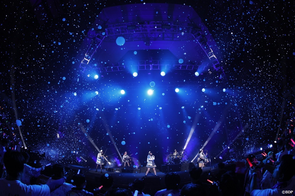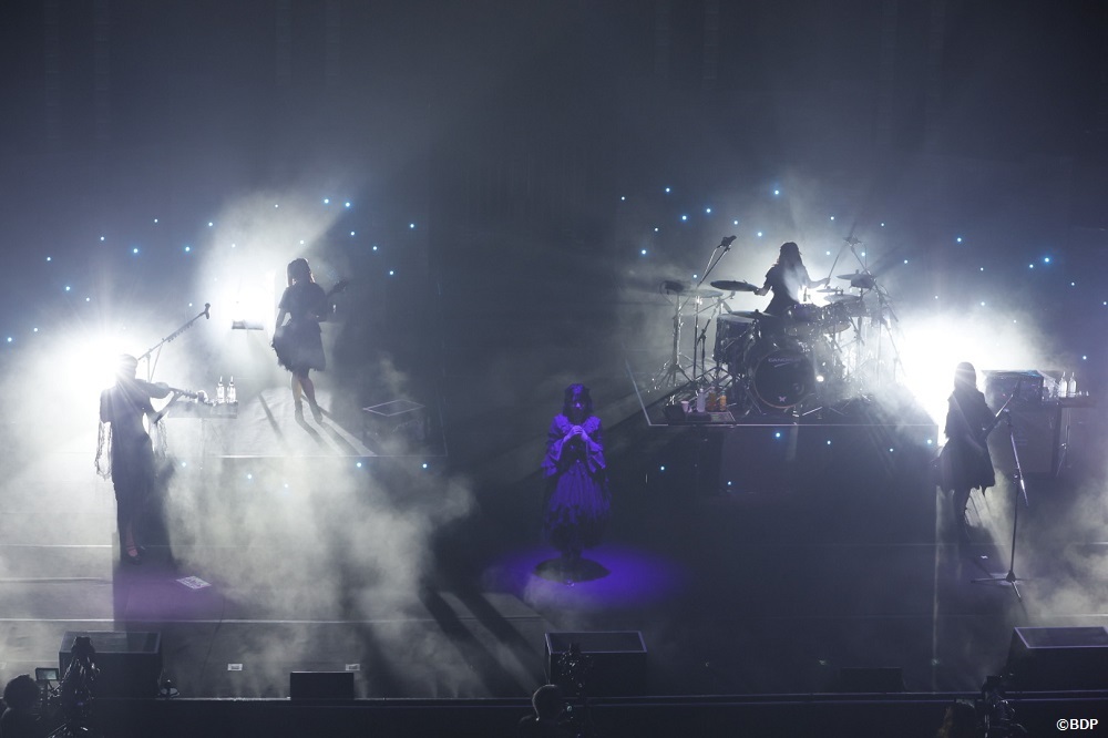 雨音を切り裂く瑠唯のバイオリンから「誓いのWingbeat」へ突入すると、再び会場のボルテージが沸点まで高まる。そして「flame of hope」の毅然とした演奏に痺れる。彼女たちのパフォーマンス、そしてずっと追い続けているファンの歓声さえも、この曲が現場を重ねるごとに威風堂々としているのを感じる。続く「Tempest」はまさにこのライブにおける最高潮の瞬間だった。