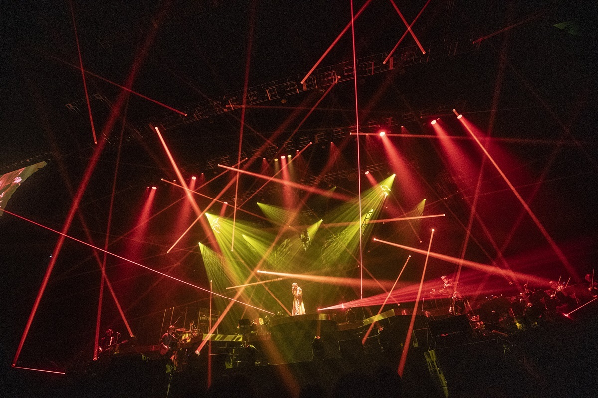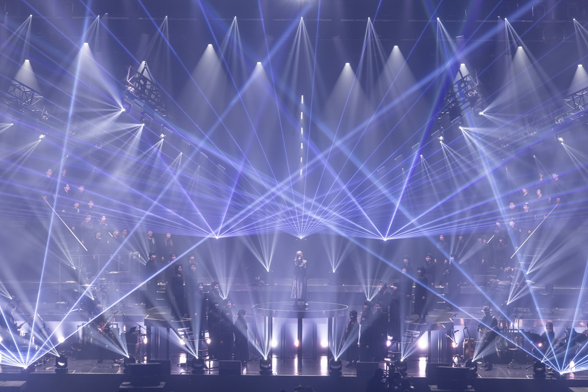 ステージの階段を埋め尽くすクワイヤーたちの中心には黒き歌うたいであるReoNa。絶望を救ってくれる曲を探していた少女は、6年のアーティスト活動の中で希望と未来を歌うシンガーに進化した。プログレッシブ・ロックというよりは、ReoNaとSAOの世界を構成する組曲とも言えるこの楽曲。曲中ではギターを持ち歌う神崎エルザパートも存在するが、そこではバレットライン(GGOにおける弾道予想線)のように赤いレーザーが飛び交う。全てのスタッフがReoNaと、観客と、作品に対するリスペクトを最後まで忘れない姿勢は感動を呼ぶ。まるでこれまでの彼女の足跡を追うような、総勢80名を超えるミュージシャンによる特別なライブは、万雷の拍手の中で幕を閉じた。