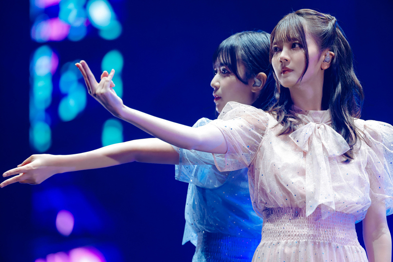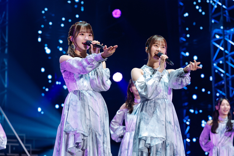 続く2曲はペア&ソロ曲。まずは「相棒コンビ」を自称する平尾帆夏と山下葉留花が、「まさか 偶然…」で美しいハモリを聴かせる。