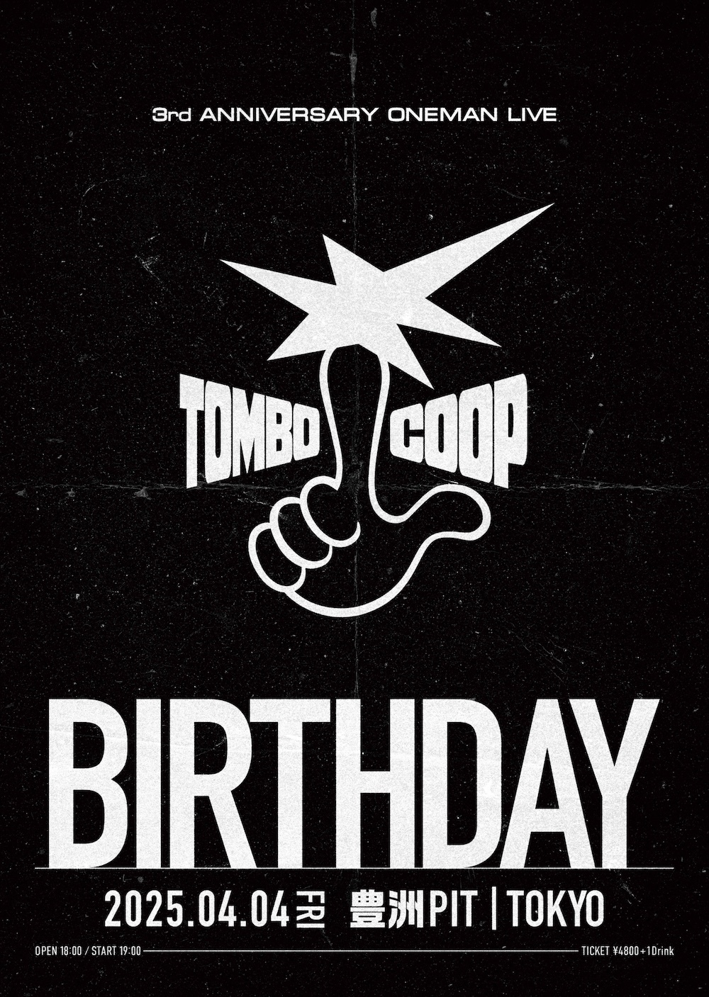 10月24日(木)にSpotify O-EASTでツアーファイナル公演を開催したトンボコープが、2025年4月4日に豊洲PITにて『3rd Anniversary ONEMAN LIVE『BIRTHDAY』』を開催することを発表した。公演翌日4月5日に結成3周年を迎えるトンボコープの自身最大規模でのワンマンライブとなる。