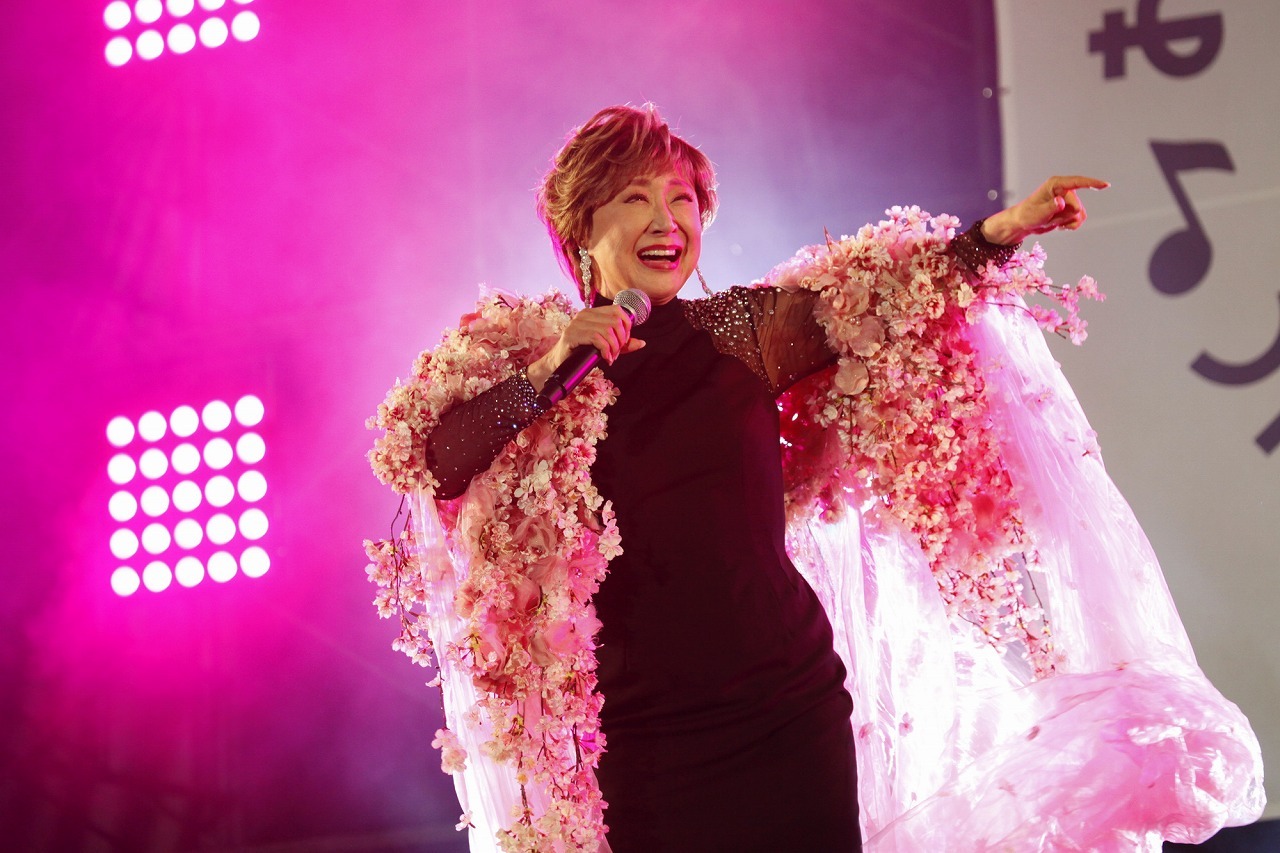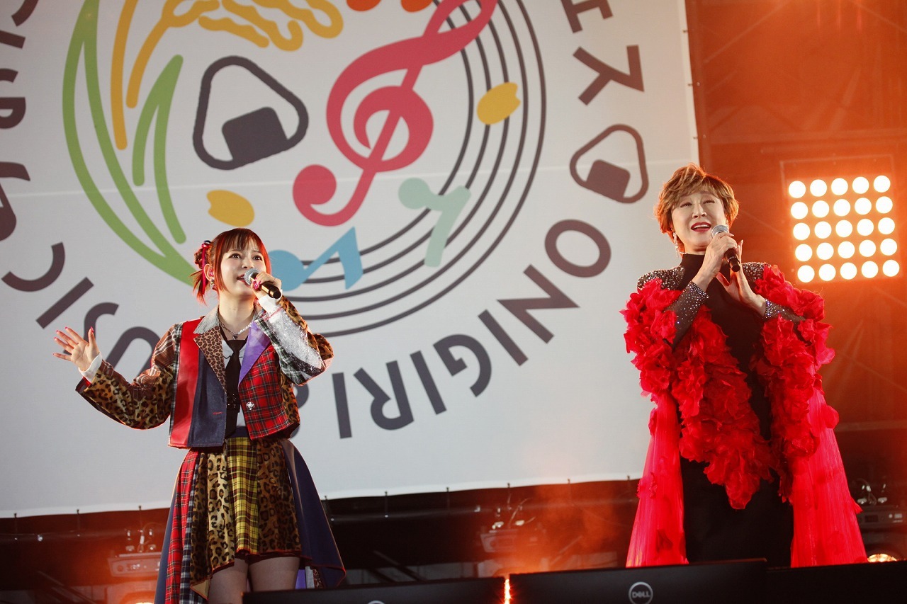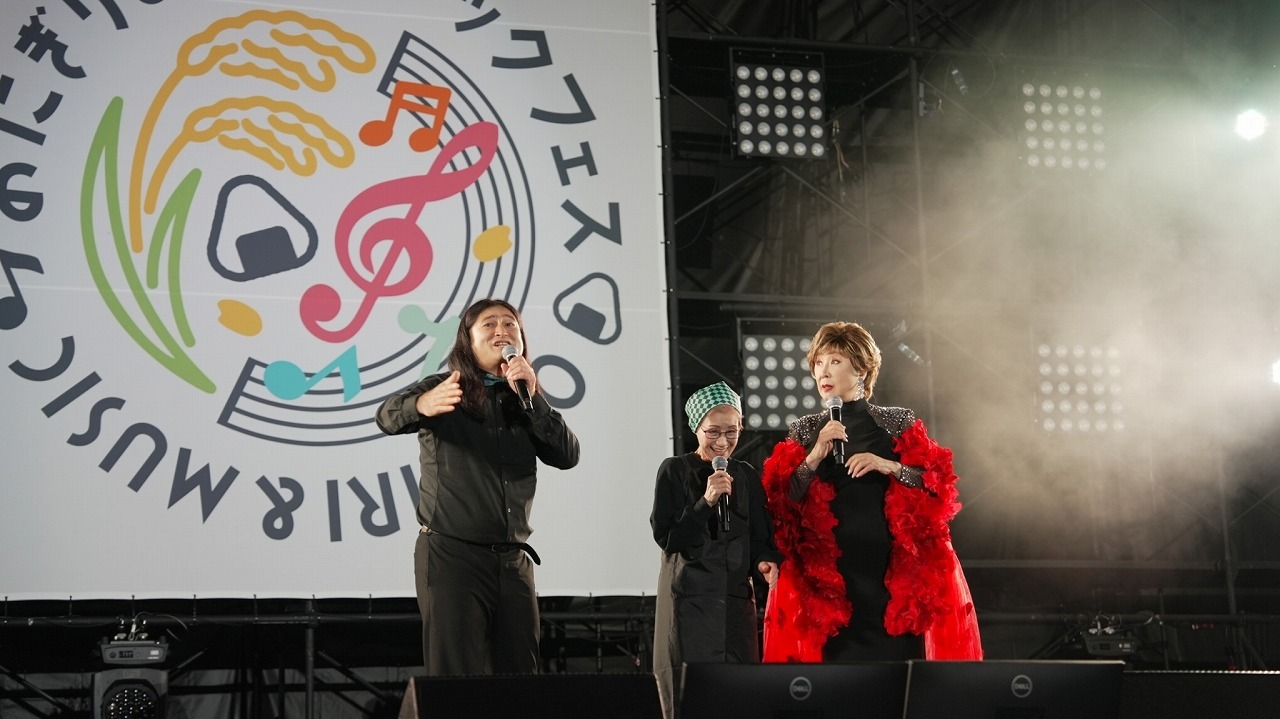 ステージに小林幸子が登場すると、その存在感とオーラで一気に会場の空気が変わり「待ってました!」と言わんばかりの大歓声が。故郷新潟をテーマにした「雪椿」と代表曲ともいえる「おもいで酒」を続けて披露。「今日は皆さんにお会いできるのをすごく楽しみにしていました。南魚沼市市制施行20周年おめでとうございます。『おにぎり&ミュージックフェス』楽しんでますか?」と会場に投げかけると拍手が起きる。
