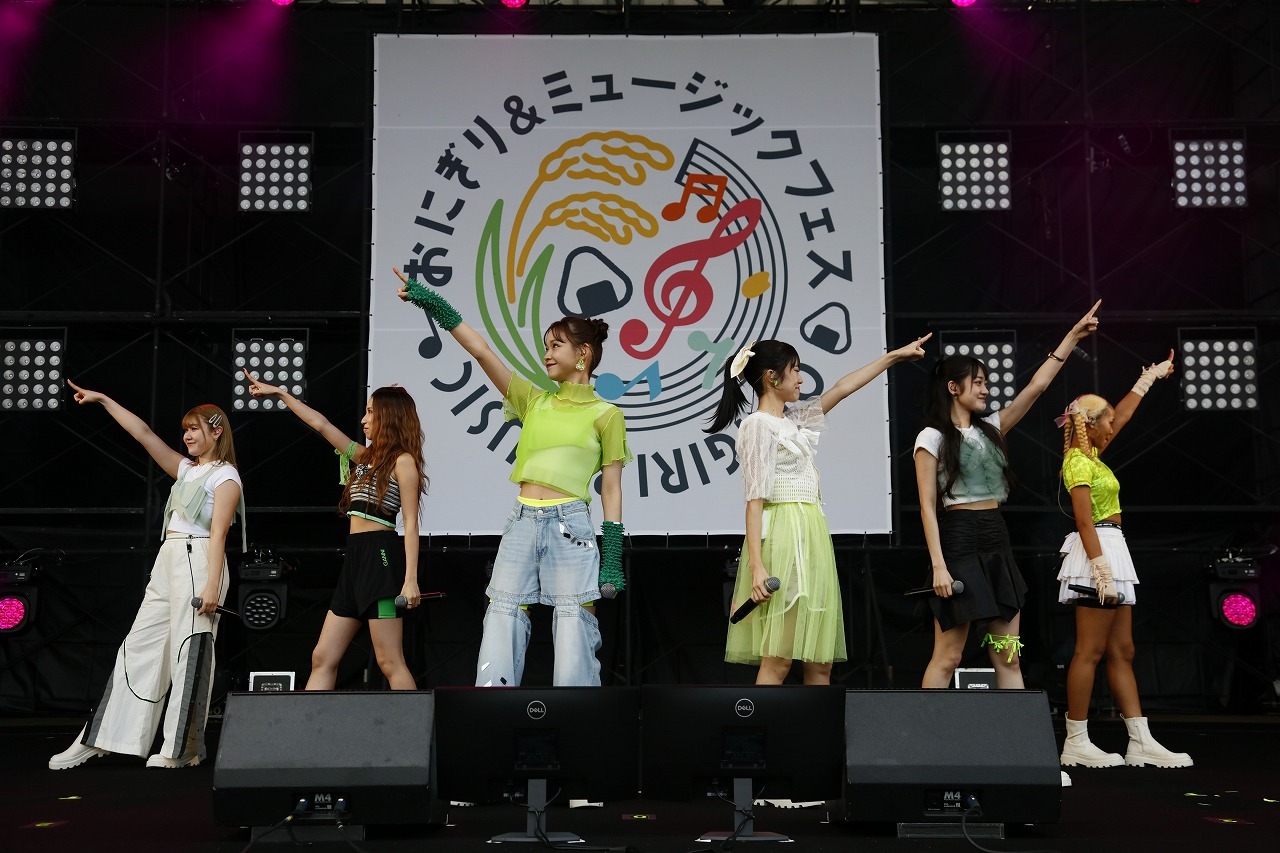 さまざまなアーティストやTGC teenのオープニングアクトにも抜擢される、大阪の中高生ダンスボーカルユニットWE3M(ウィーム)。XGの「NEW DANCE」やRIE HATAの「GOING IN」をカバーし、キレのあるダンスを魅せた。 「私たちは昨日、全員大阪から来たんですが、いつもはTik Tokで動画を公開したり、今日のようなイベントに出演したりしています。」「このフェスで何か食べたいなと言ってたんですが、売り切れていて。『おにぎり&ミュージックフェス』なのでお米食べないと。そして、新潟は寒くなってきましたね。この寒さを私たちのパワーで温めるので、ぜひ最後まで楽しんでってください」と話し、オリジナル曲「HELLO NEW WORLD」でも観客を掴んだ。