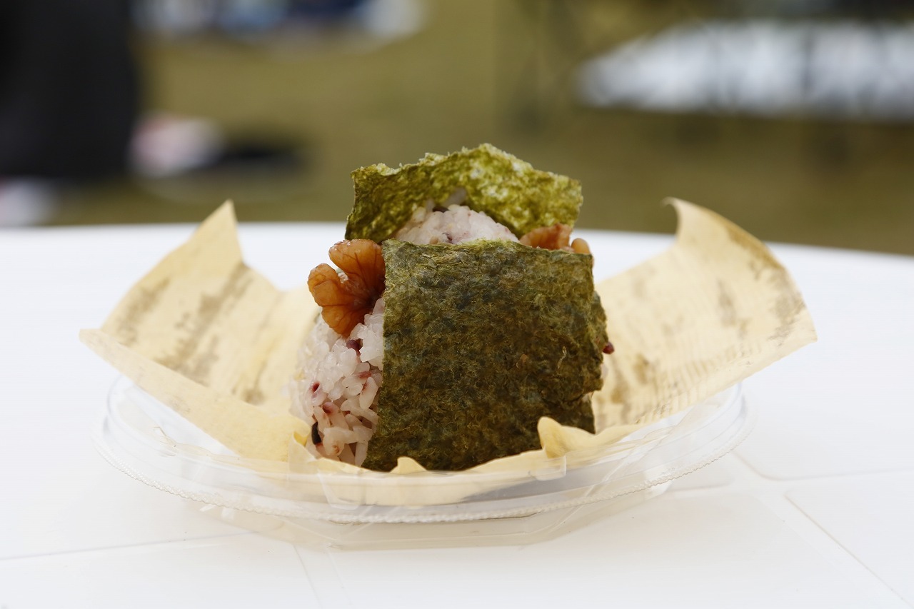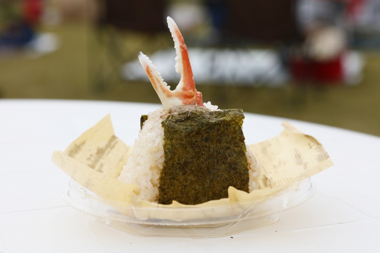 また、「おにぎり専門店」とライブ出演者とのコラボおにぎりも数量限定で販売し、完売続出の大盛況! ともに新潟出身の「おにぎり大塚ぼんご」女将・右近由美子と小林幸子による “ラスボスおにぎり” は、小林幸子の大好物のカニを使った、大きなサイズのインパクトあるおにぎり。