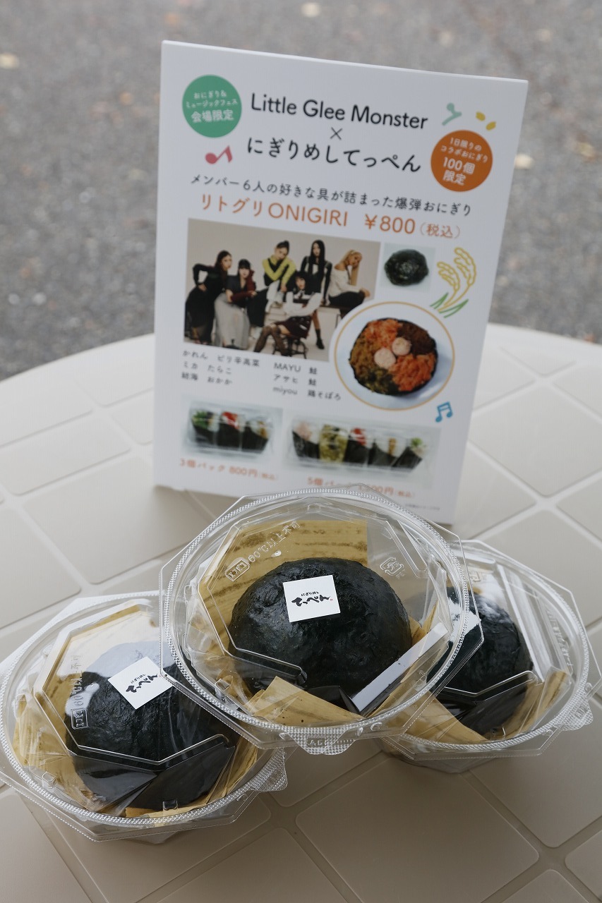 「にぎりめし てっぺん」とLittle Glee Monsterによる“リトグリ ONIGIRI”は、各メンバーの好きな具材を1個に組み合わせた具だくさんな爆弾おにぎり。(MAYU・アサヒ/紅鮭2倍)(かれん/ピリ辛高菜)(結海/おかか)(ミカ/焼きたらこ)(miyou/鶏そぼろ)など、この日にしか食べることのできないプレミアムなおにぎりを提供。