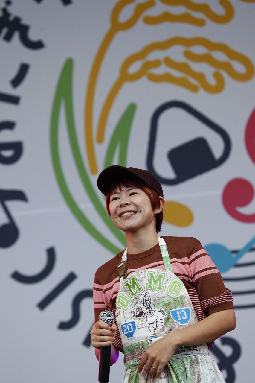 “おいしいものは人類の奇跡だ!”がモットーのくいしんぼうHIP HOP、DJみそしるとMCごはんは、まさにこのフェスにぴったりのアーティスト。トークでは「紛らわしいんですが、私一人で活動していますが、食べ物の名前でラップしたり歌ったりして活動しています。今日は南魚沼市20周年の大事なフェスに出演させていただきましてありがとうございます。おいしい食べ物の曲をたくさん歌って盛り上げていきたいと思います」とトークし、会場からは温かい拍手が。お米にまつわる曲も多くあり、この日はその中から「米夢☆米舞r.t.m.ONIGAWARA」や「どんまいr.t.m.米米CLUB」で盛り上げる。食欲をそそる曲が並び、ラストの「あの素晴らしい味をもう一度」の頃にはお腹が空いて、おにぎりを買いに行ってしまった人も多かったのでは。