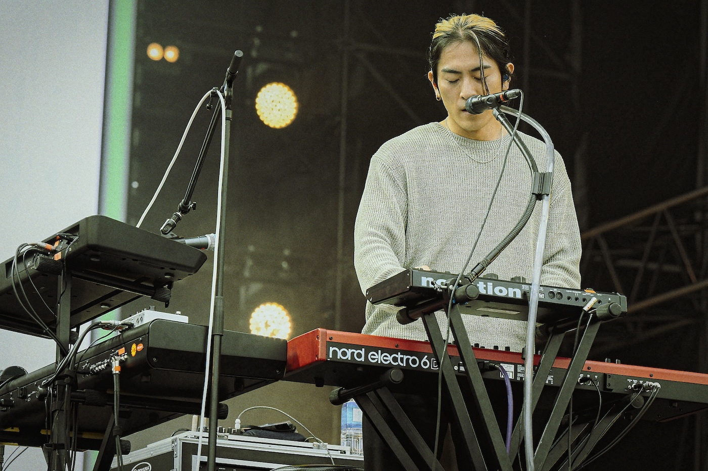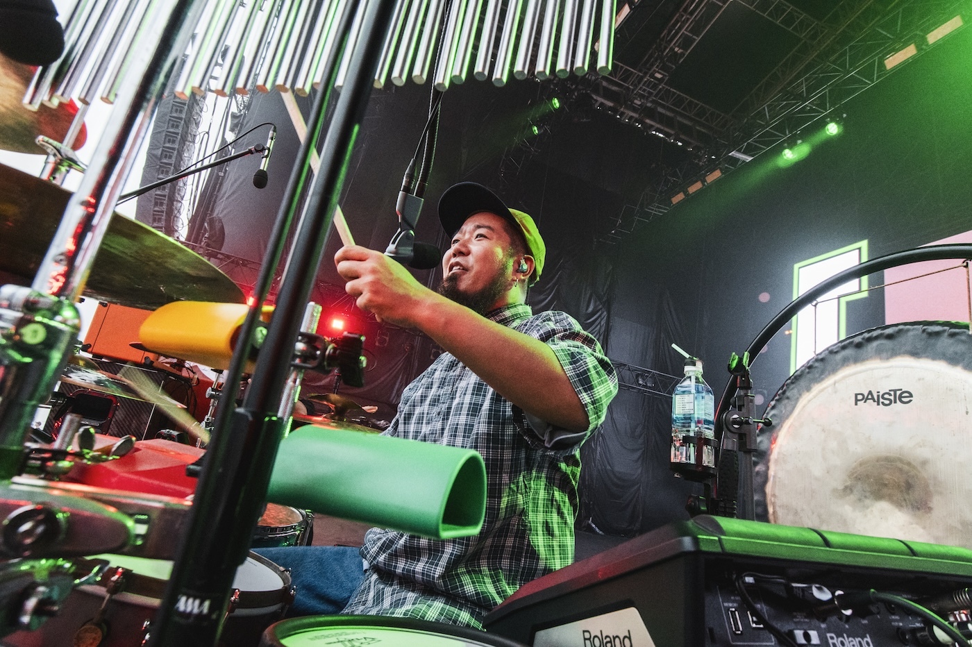 おもむろに内田怜央が歌い出し、「Hyper」からライブをスタートさせたKroi。どす黒いグルーヴで温度を上げ、自然と歓声が上がった。内田が「Kroiちゃん、初めましての方?」と呼び掛けると結構な数の手が上がり、内田は笑顔で「好きに乗ってください」と伝えた。内田の美しいファルセットが響いた「Monster Play」ではハンドクラップやコール&レスポンスが起こりつつ、各メンバーの超絶なプレイヤヴィリティがさく裂。内田が「ようこそ皆さんお越しくださいました! こんな長いソロをやってる我々を呼んでくれるTHIS FESの器の大きさに感謝します」と言った後、「雨止んだね? 良かった。今日1日死ぬほど楽しんでください!」と言って、「Sesame」へ。