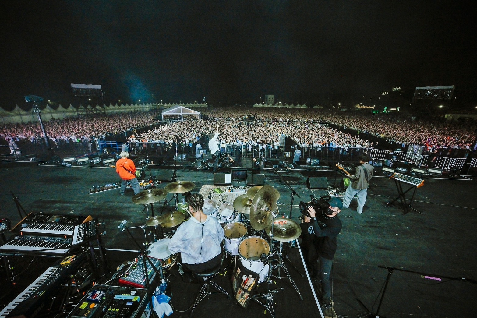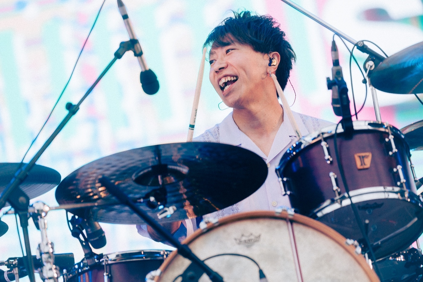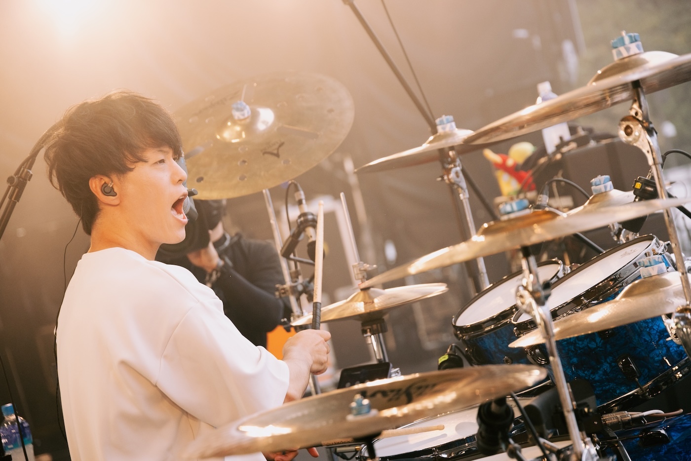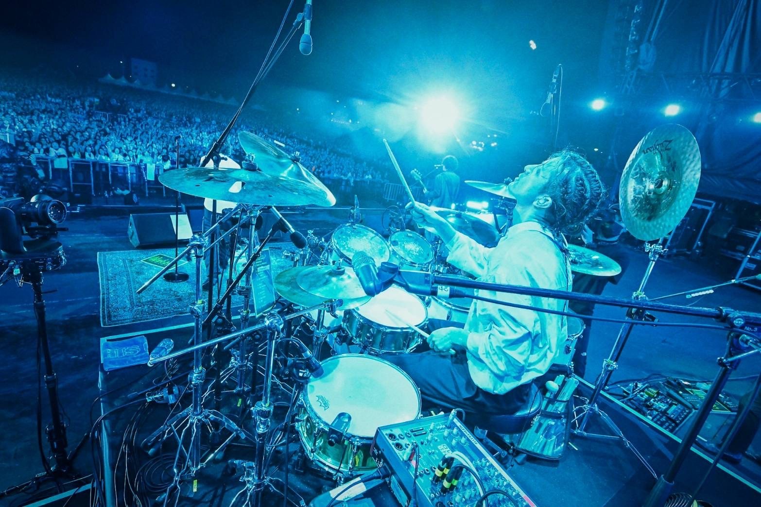 サウンドチェックからRYU-TAのTHIS FESコールで熱気を高めた04 Limited Sazabysは、1曲目の“swim”から鋭くも温かに吹き抜ける風のような演奏でオーディエンスを巻き込んでいく。目まぐるしい展開を見せる“Galapagos Ⅱ”やヘヴィな“Jumper”など、多様な音楽性がバンドの一塊のエネルギーに鮮やかな色彩を塗っていくようだ。