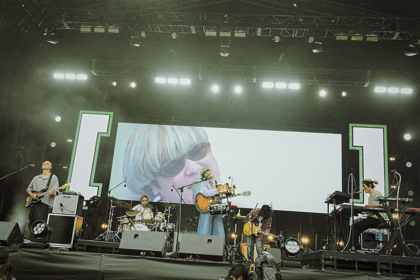 「THIS FES、ステージを降りたときに一滴も愛情が残っていないように。全部出し尽くして帰ります!」――そんな片岡健太の言葉と共に幕を開けた、sumikaのステージ。初っ端の“Lovers”から、片岡は音楽を隅々にまで浸透させるように、ステージ上を練り歩きながら歌う。8人編成の大所帯が奏でるパワフルで華やかなサウンド。小川貴之とのツインボーカルスタイルでの“ふっかつのじゅもん”ではポップに盛り上げ、 “VINCENT”はオーディエンスの合唱も重なって壮大なアンセムとして威風堂々と響き、“Traveling”はメロウに、穏やかに、誰しもの中にある「小さな声」をすくい上げるように繊細に奏でられた。