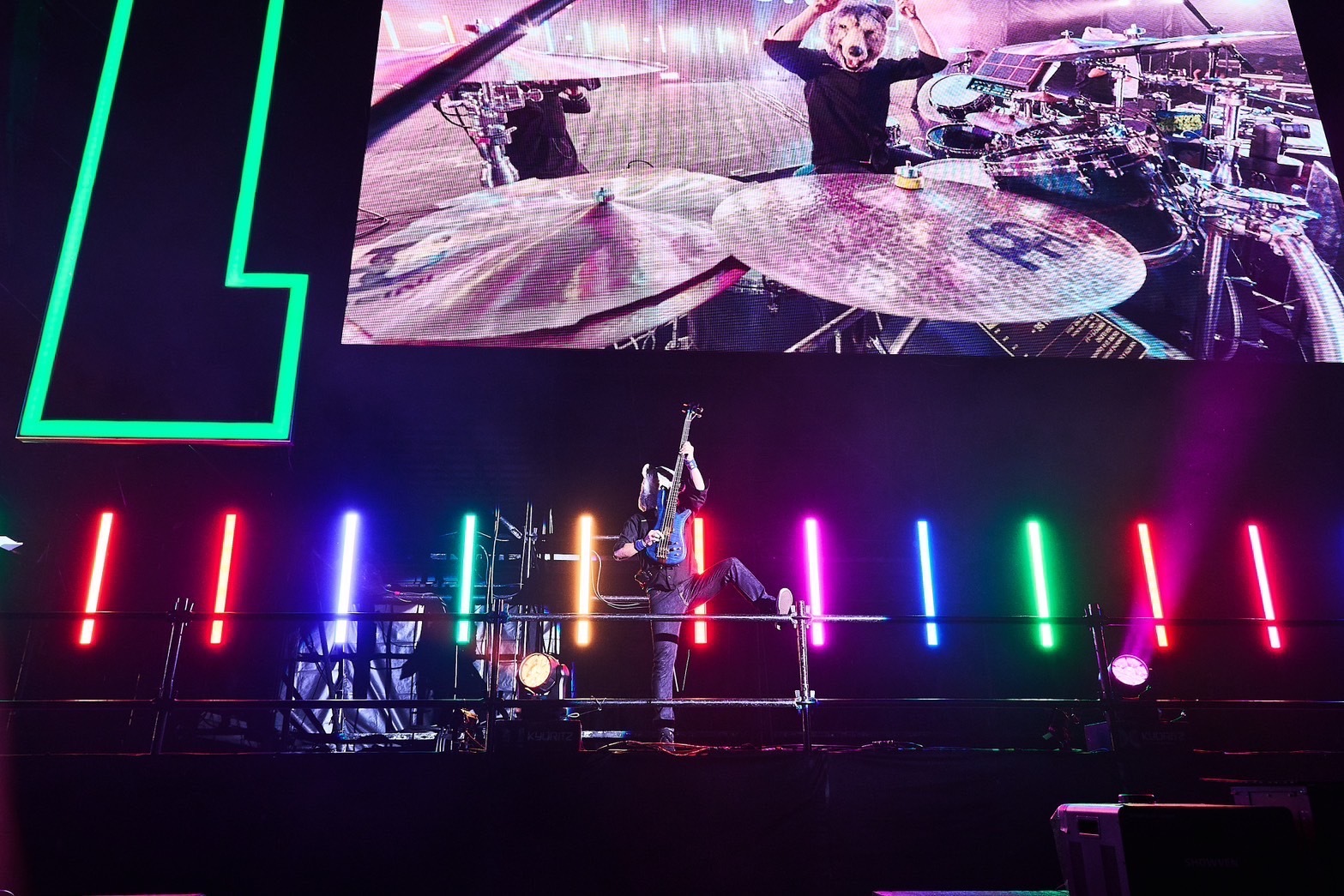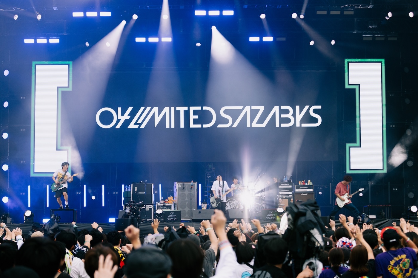 AC/DCの「Thunderstruck」のカバーを演奏し、ダイナミックでアップリフティングな音像で2万人を躍らせた。DJサンタモニカによるスクラッチが聞こえ、ラストは「FLY AGAIN」。もちろんサビは「Fly again, yeah ye-o」のシンガロングが巻き起こり、オーディエンスが腕を上げ下げする景色が広がった。ジャン・ケンが「コノ後ハオ待チカネ、[Alexandros]デス!」と言って、スペア・リブによる恒例の「1、2、3、ガゥ!」コールが響き渡り、2日目のトリの[Alexandros]にバトンを渡した。