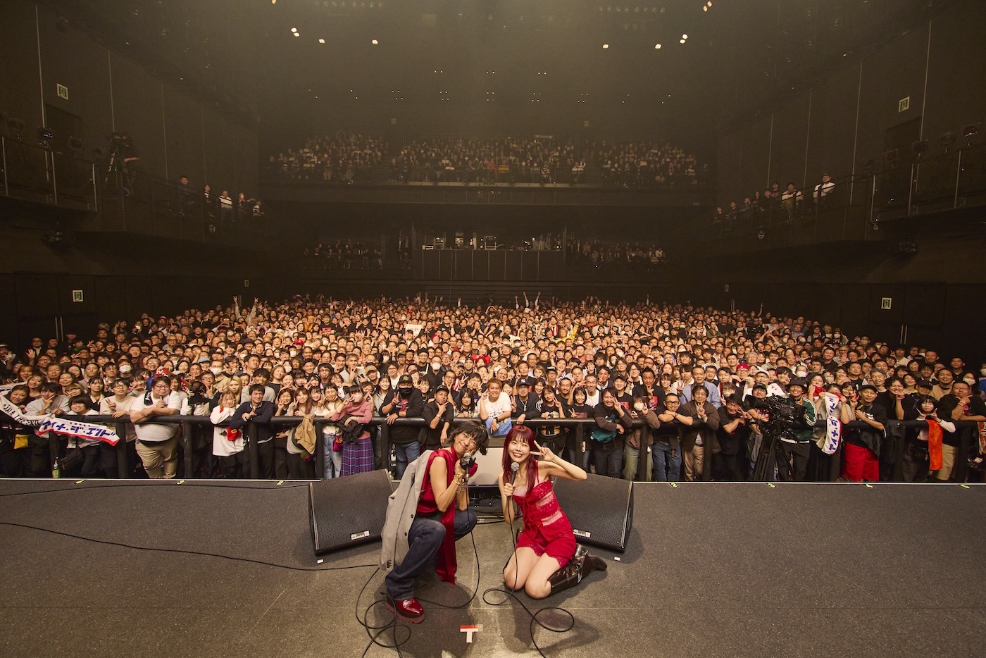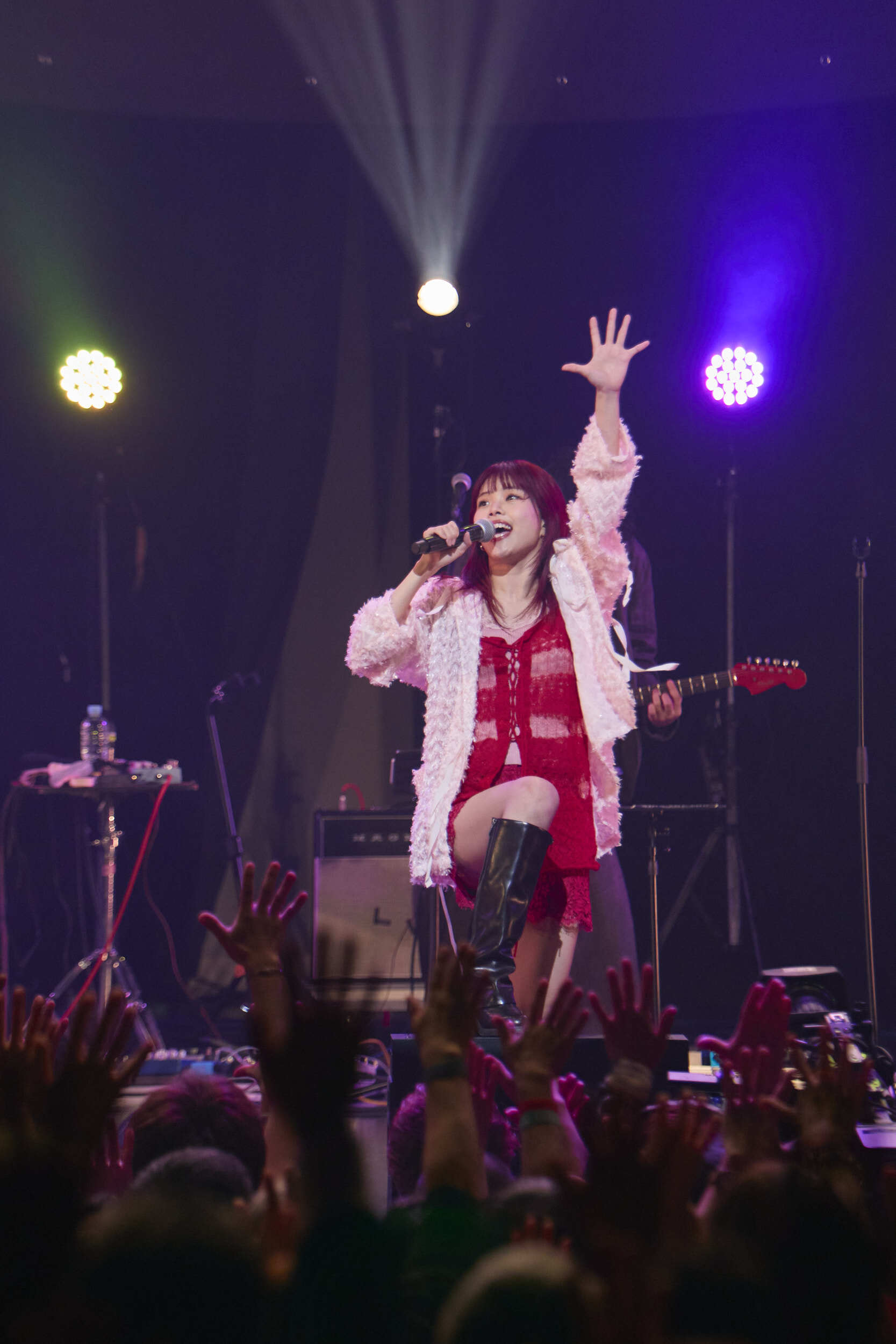 その西田と大井も交えて制作したという新曲は「風とくちづけと」。柔らかくも力強いミドルナンバーに乗せて「オーオーオー」というチャントが飛び交う様子は、重厚感のあるライブの中で涼やかな空気を感じる一幕だった。さらに、前述した共演時のエピソードを明かしつつ「いつかわたしもUAさんみたいに人を守ってあげられることを言いたいな」と憧れを口にしたあとには、UAの名曲「悲しみジョニー」をカバーした。UAのレパートリーの中でも不穏さとスリルが表出したタイプのサウンドは、アイナとの相性抜群。音源化を希望したいレベルのハマりっぷりだった。終盤にはヘヴィな音に乗せシャウト混じりのエモーショナルなボーカルで魅せた「Love Sick」、そしてリズミカルに弾ける「サボテンガール」で締め。ライブ中何度も覗かせていた不敵でクールな微笑は、ここでは満足げな優しい笑顔に変わっていた。