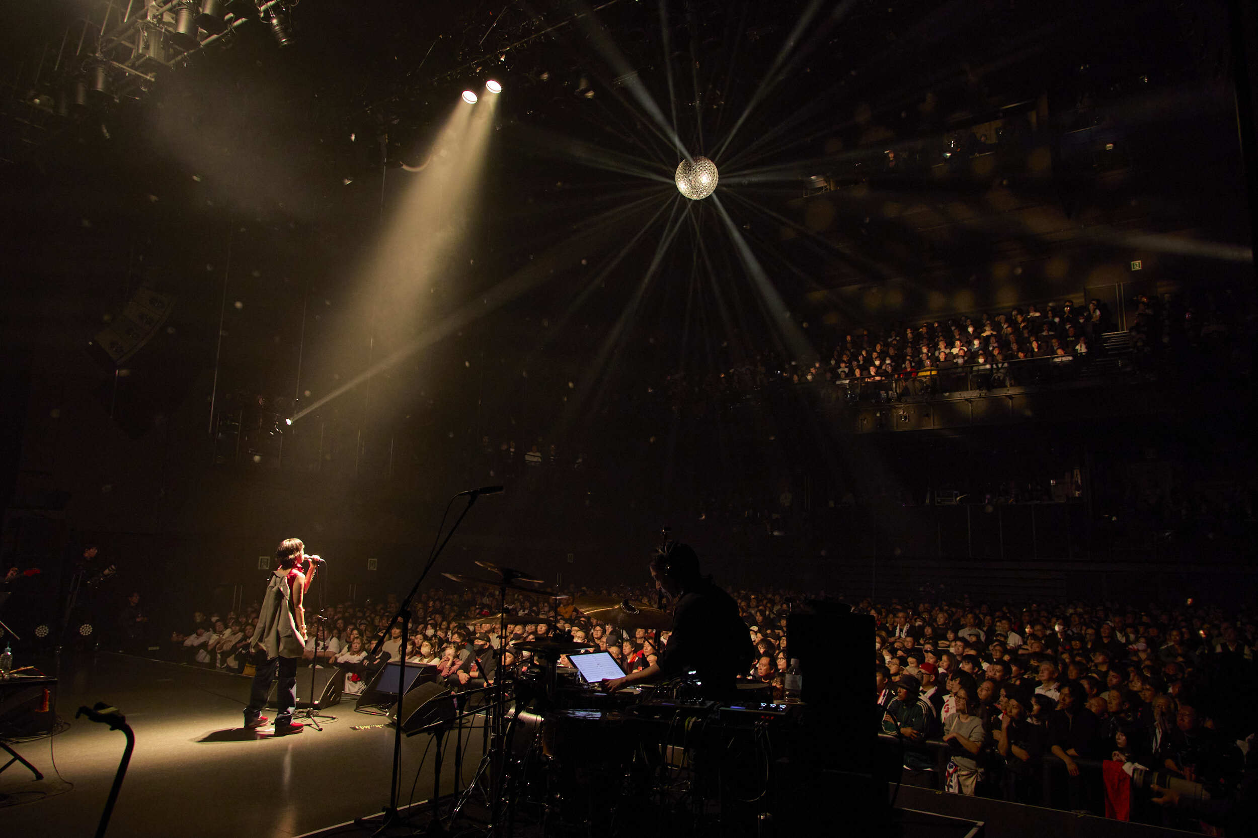 後半にかけてはよりギアを上げていくUA。歌とコーラスの絡みが呪文的な響きを生む怪しげな立ち上がりから、シンセや尖ったエレキギターの音とともにテクノ系のダンスナンバーが立ち上がっていく「AUWA」。そこから民族音楽的なプリミティヴな興奮をもたらす「TIDA」へと繋ぐ展開で圧倒する。メンバー紹介を経て陽性ダンスビートとバキバキのデジタルサウンドのコントラストも見事な「太陽手に月は心の両手に」でライブを終えた。ソウルやR&Bといった自身のルーツも、ポップシーンで輝いたヒット曲の数々もしっかり披露しつつ、そのどちらに寄りかかるでもない斬新な表現を求め続ける姿勢を何より感じるアクトであった。