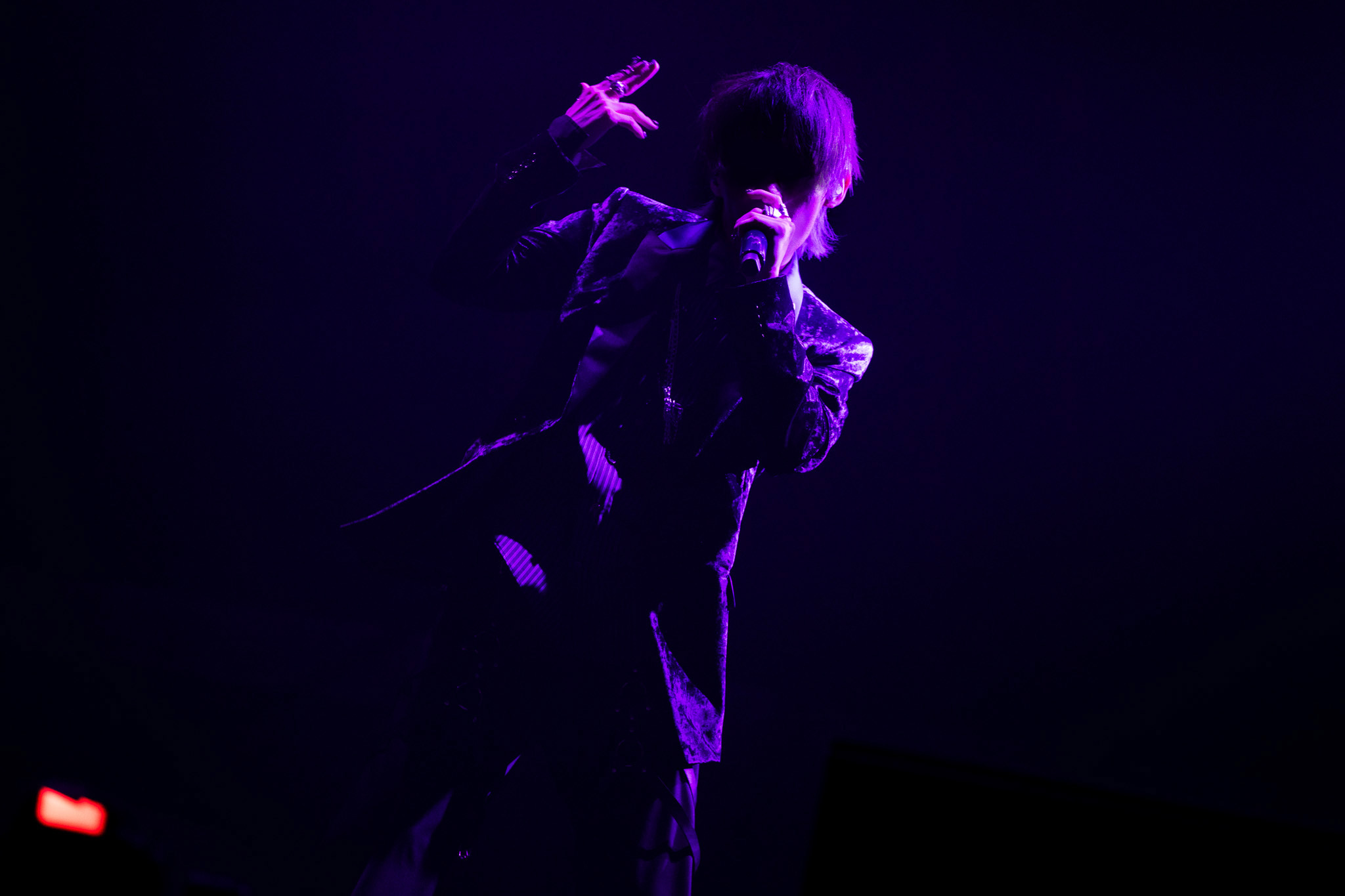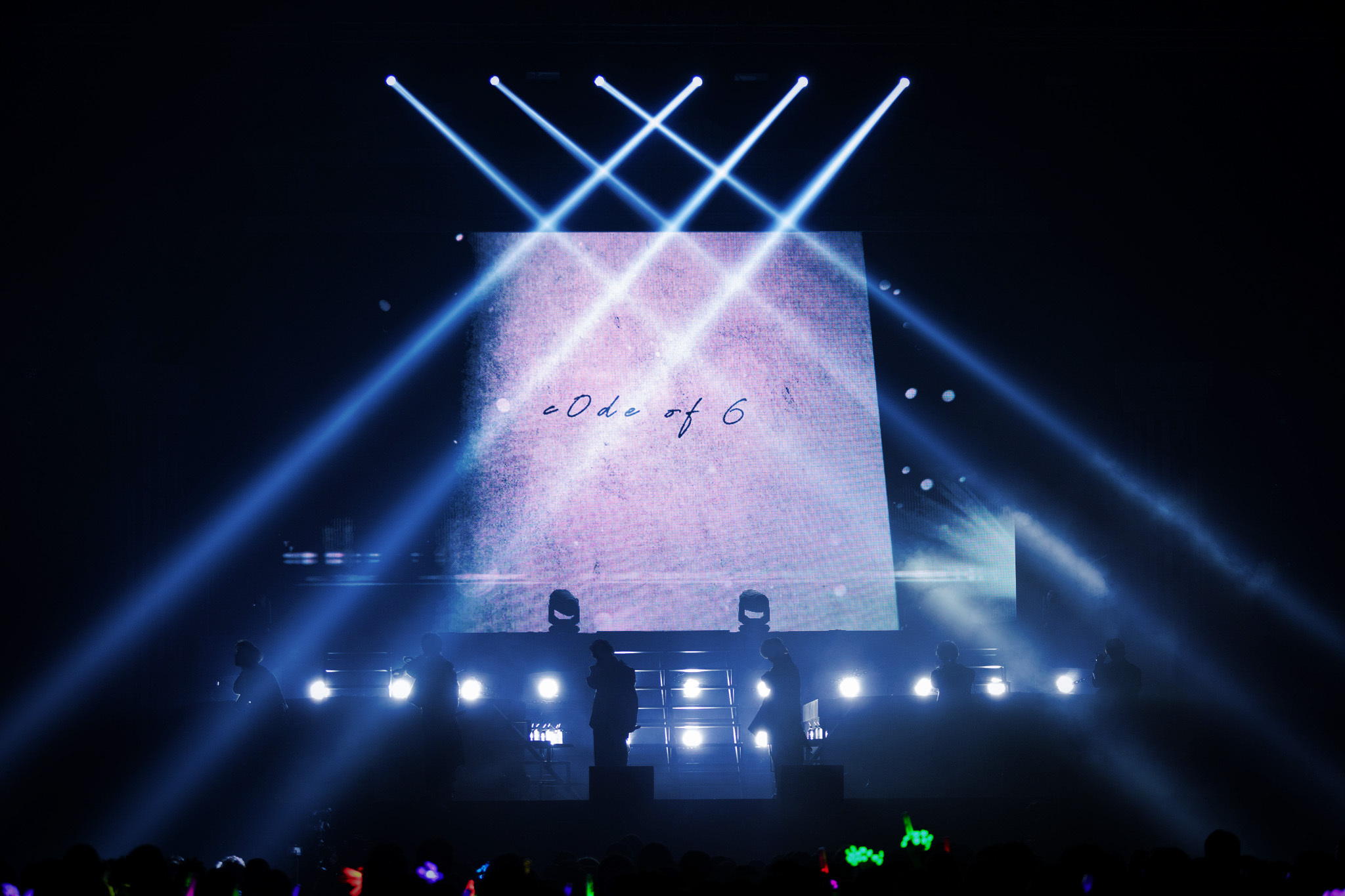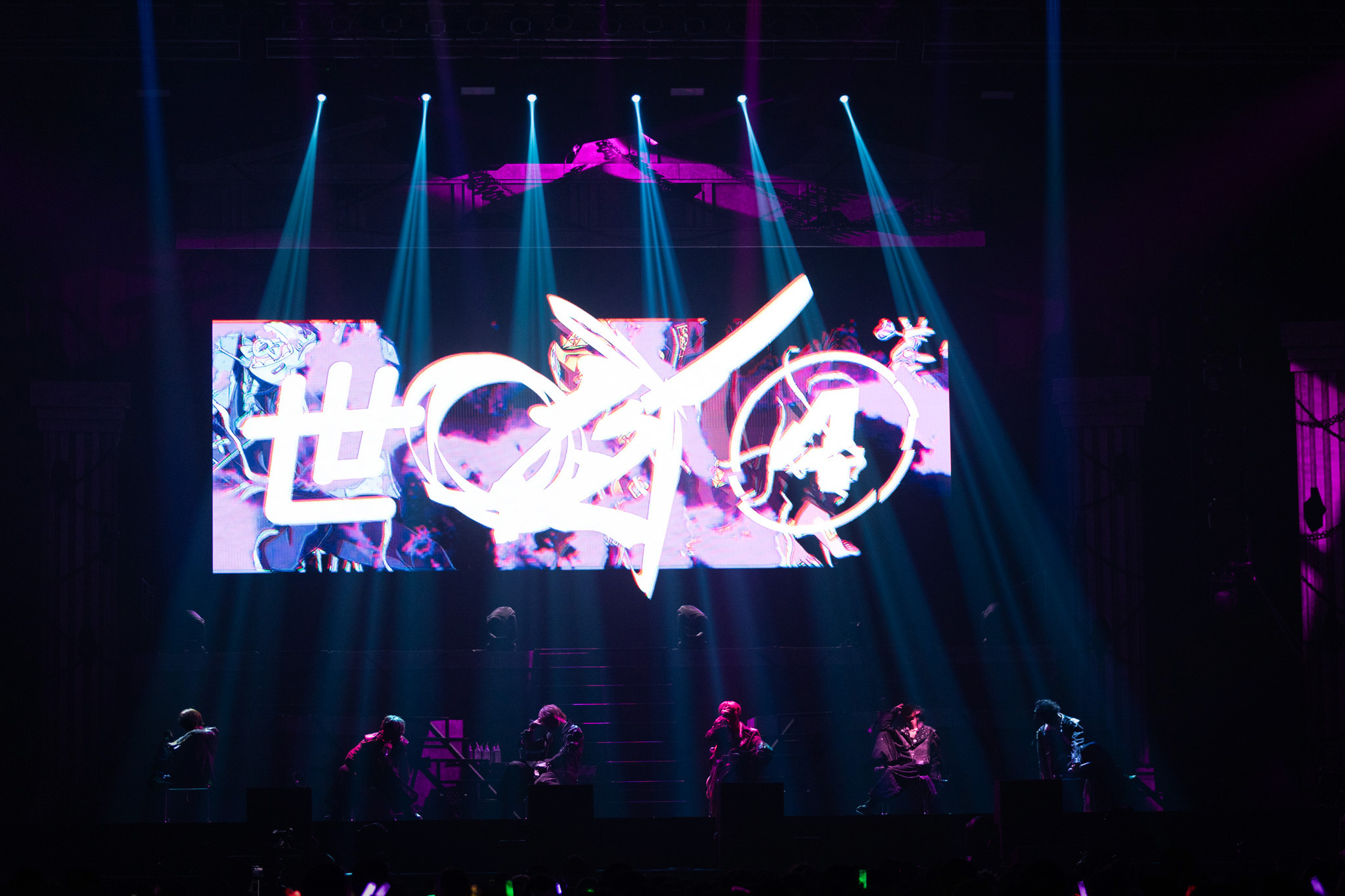 それぞれのメンバーカラーのジャケットにお召し替えした6人は「アンダーリズムサーカス」で再びステージにそろい、和情緒漂う「Kiss in the Dark」では華麗なターンも。同じく和情緒が映える「六幻」では儚げな歌声をていねいにつないでいく。