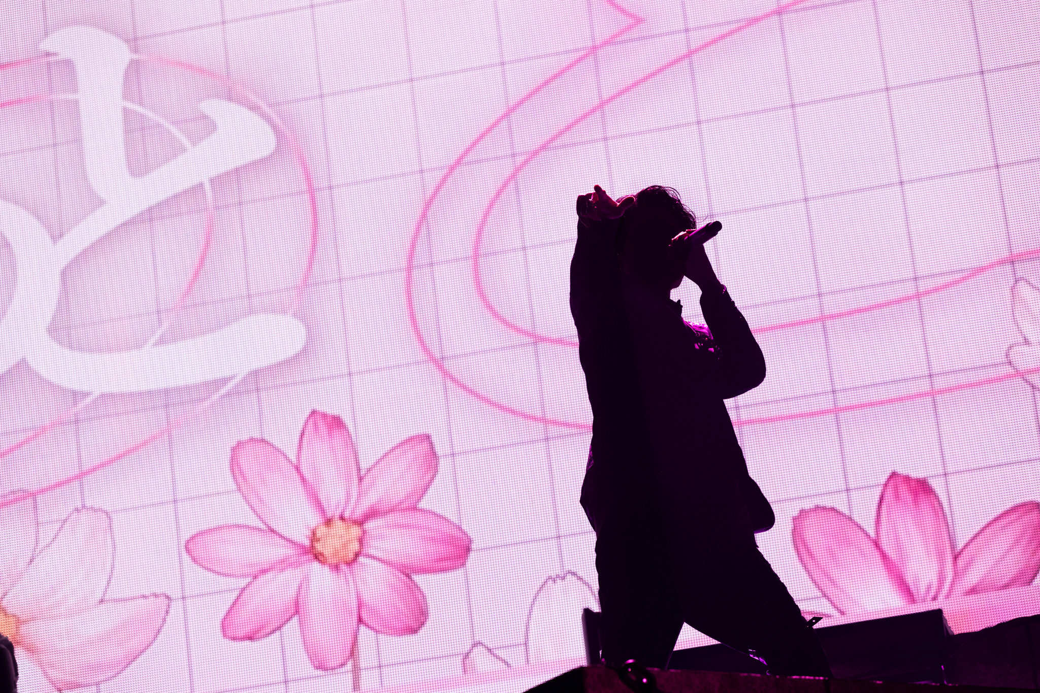 柔らかパステルカラーのライトの下でポップに歌ってダンス……かと思いきや狂気的な混沌の渦に巻き込む「MeDi信」の最後にステージに倒れ込んだ6人。「本公演はシクフォニメンバー消失のため以上で終演となります」というアナウンスに続きエンドロールが流れ始めるというまさかの展開にざわめく場内だったが、これもシクフォニらしい仕掛けのひとつ。映像に忍ばせた“反撃は終わらない”というメッセージ通り、ソロステージでライブを再開することとなった。