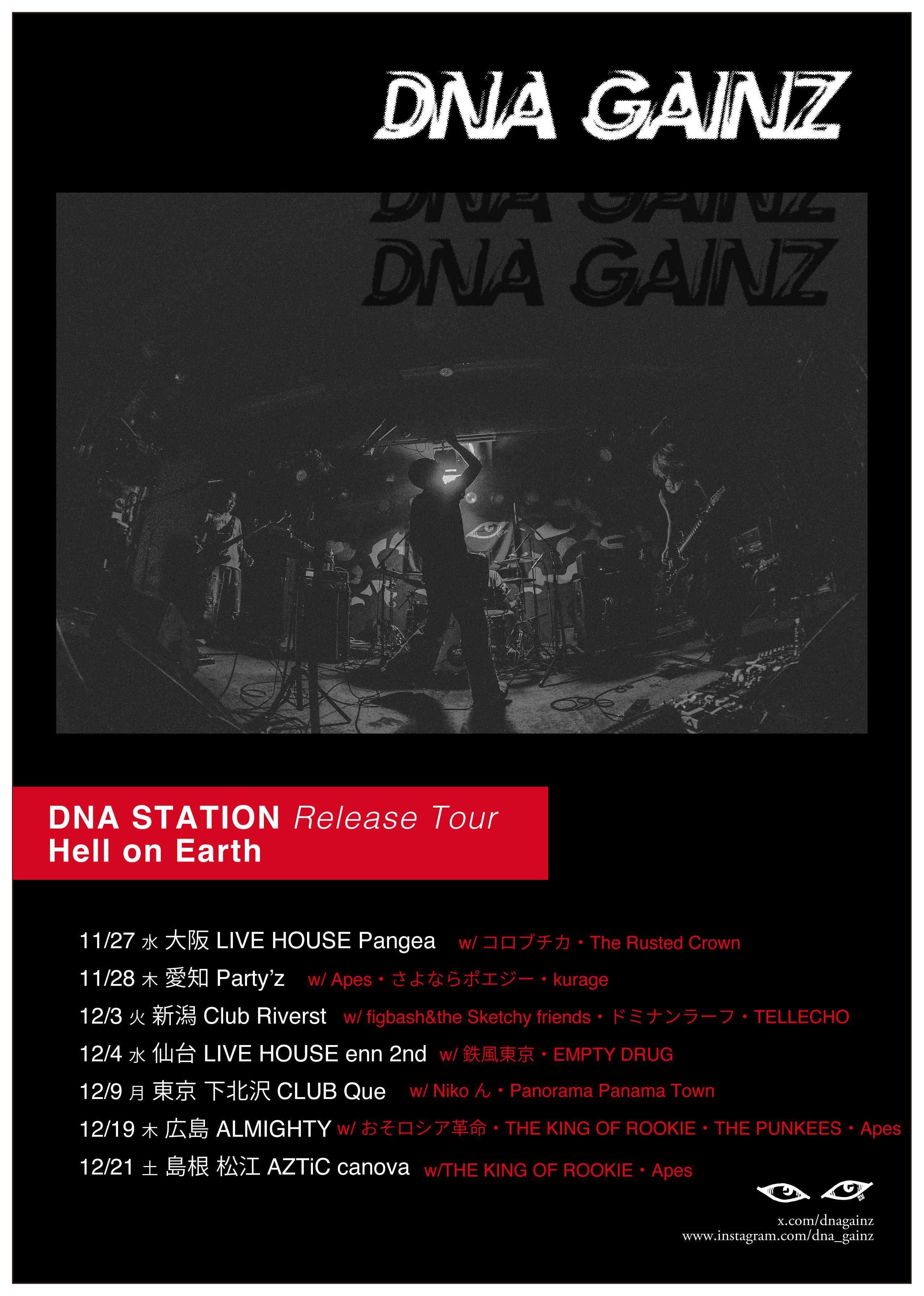 DNA GAINZが11月20日(水)にリリースする配信EP「DNA STATION」のジャケットと収録内容、翌週からの全国ツアーに出演するゲストを発表した。