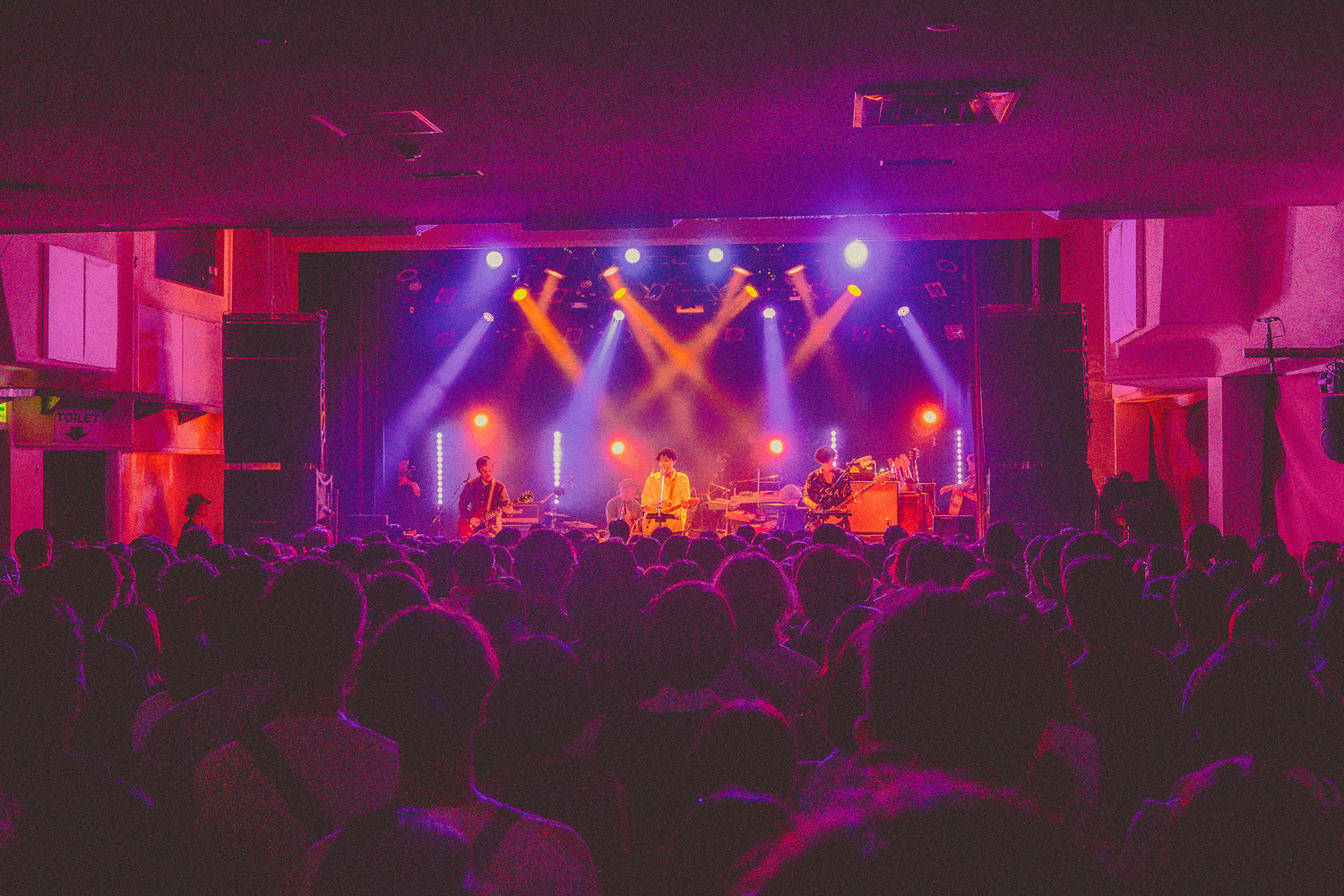 続く「The milk(of human kindness)」でも、ゆっくりどっしりとしたグルーヴを感じさせてくれる。GRAPEVINEの普段の規模感で言うと、数百人のライブハウスで観れることは貴重過ぎて、一睡の余地も無いほど観客は後方までみっちりと詰まっている。考えてみれば、前回の大阪のライブは大阪城音楽堂であり、やはり貴重過ぎる。全ての演奏が心地好く、高野のテルミンや金戸のマラカスといったイレギュラーな楽器も堪らなく気持ち良く合わさっていく。いつものことだが、観客たちも基本は心身委ねながら落ち着いて聴いていて、だからこそ、高揚した時に突き上げられる拳や両手に興奮のリアリティーが現れている。フロア一番後ろに設置されたPA卓の後ろにある席でライブレポートをノートに記していたが、スタッフまでもが自然に体を揺らしているのは、本当に良質の音楽である証明しているように思えた。