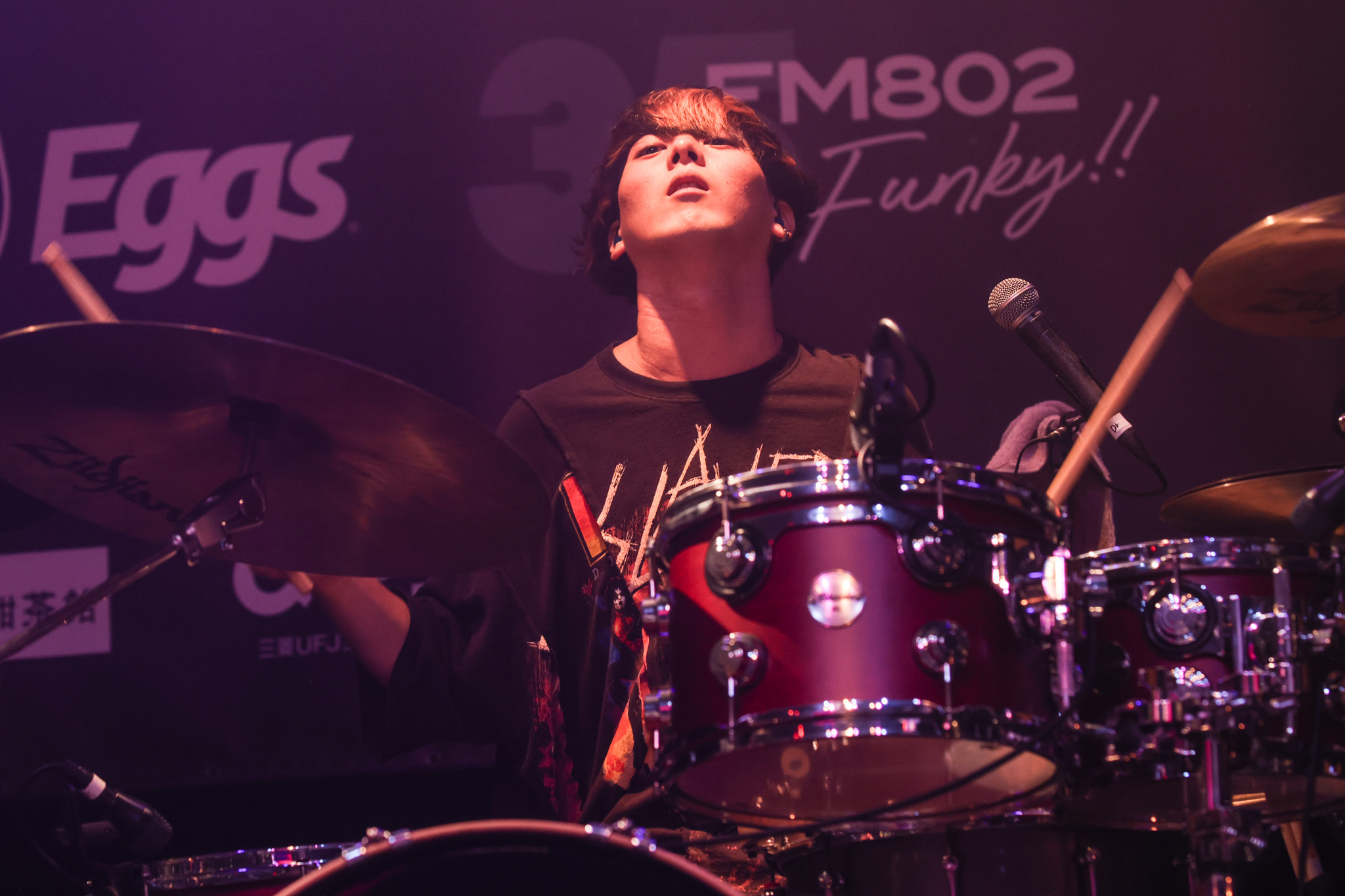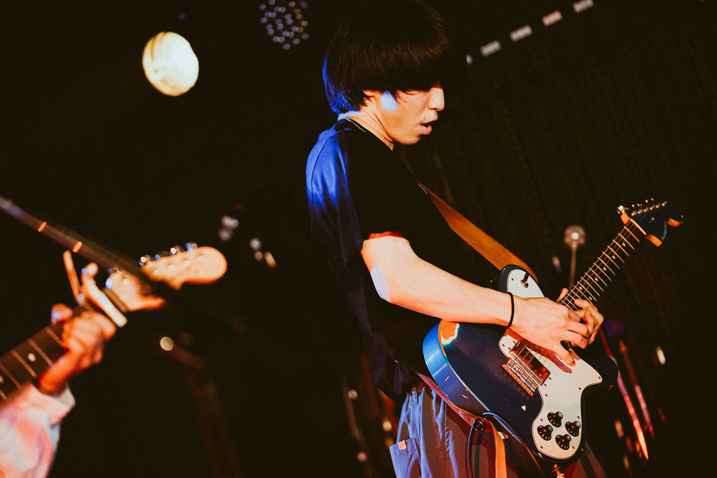 盟友の活躍をしかと目撃し、移動したのはSUNHALL。東京の4ピースバンド・35.7は最初にハタノが802で担当した番組『LNEM』でも曲をかけたり、ゲストに迎えたりと交流があったそう。「ボーカルのたかはし ゆうさん(Gt.Vo)は歌に感情を込めるのが上手くて、SUNHALLの後ろまで巻き込んでいました。下北のバンドの風を感じましたね。あとドラムのこなくんがめっちゃふざける子なんですよ。でもライブではすごく真剣で。彼は現役音大生で、音楽理論的なセンスを持って楽曲にも携わっていて、メンバーが作った曲を良い形で型にハメていく。すごく重要なピースなので、カッコ良くてちょっと嫉妬しますよね。年下やけどめちゃくちゃ尊敬します。好きなバンドです」と素直な想いを語っていた。
